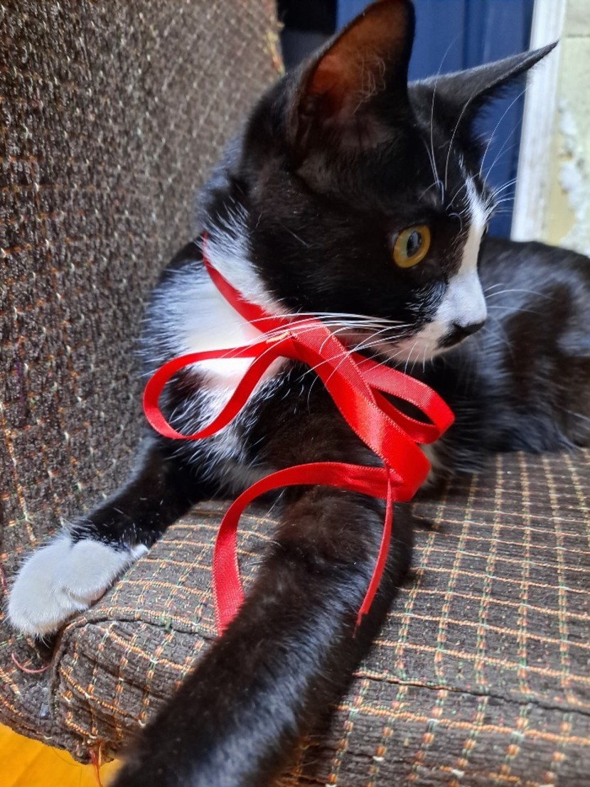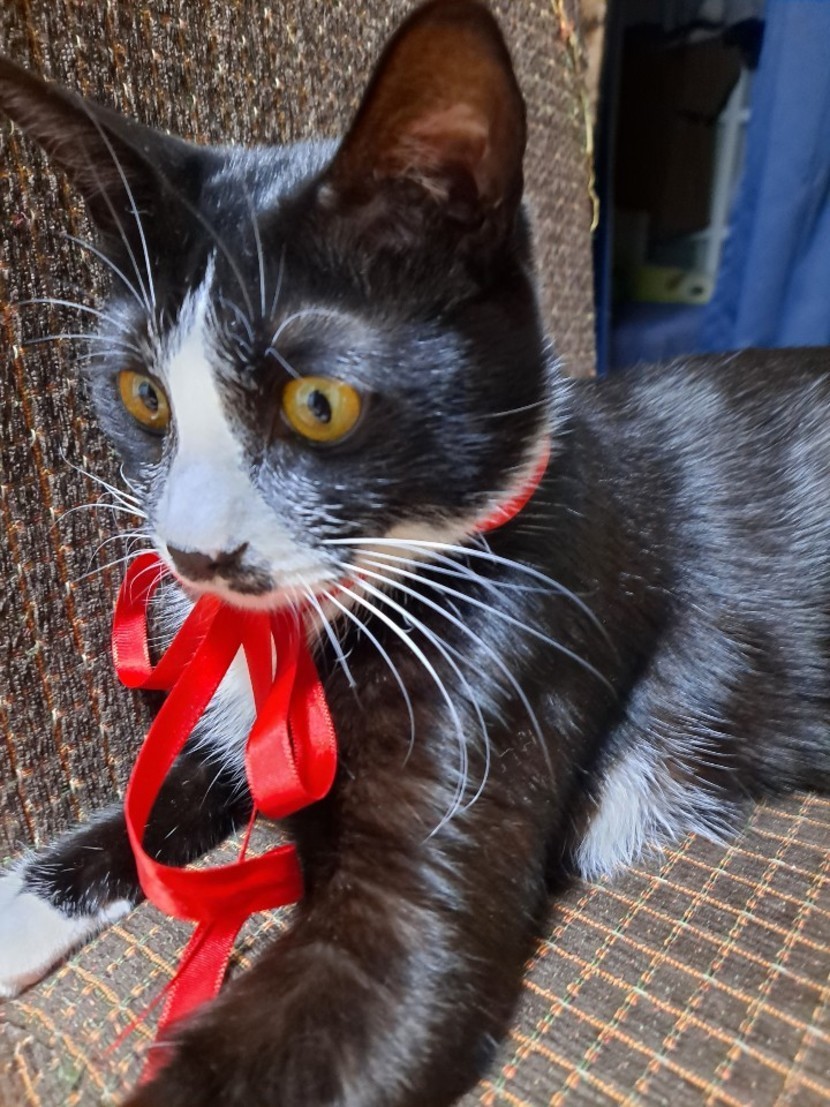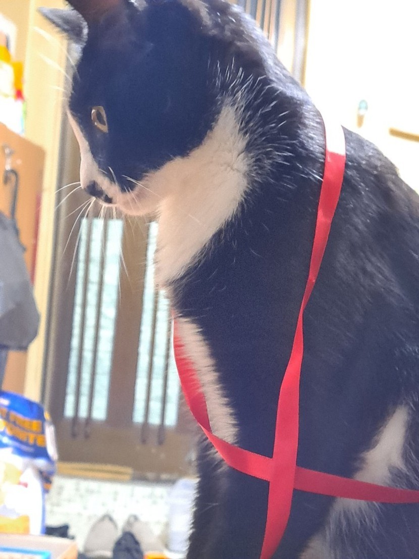 끈에 집착하길래 나비넥타이 해줬어요~♡