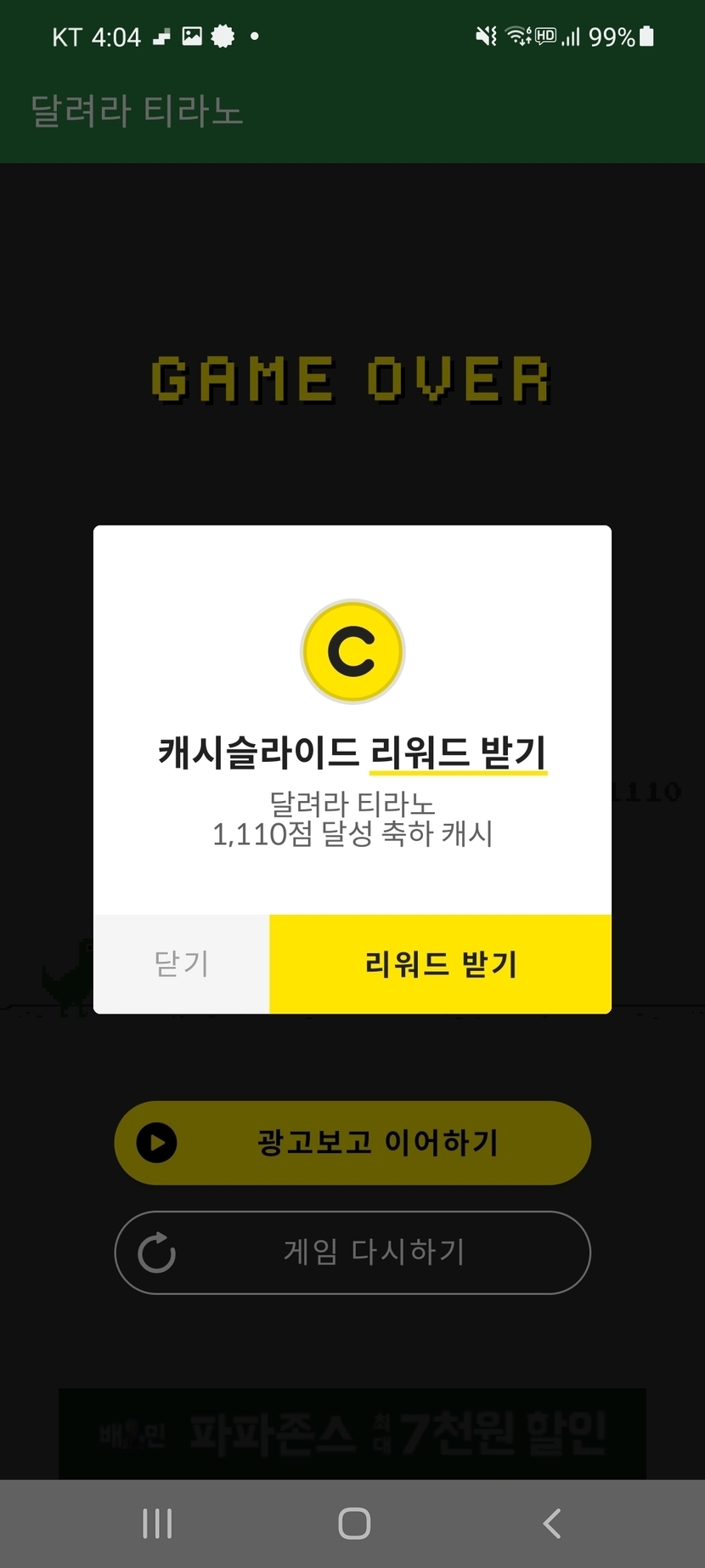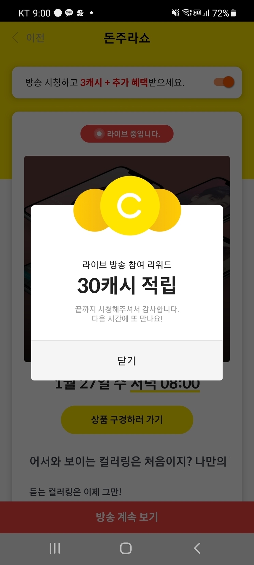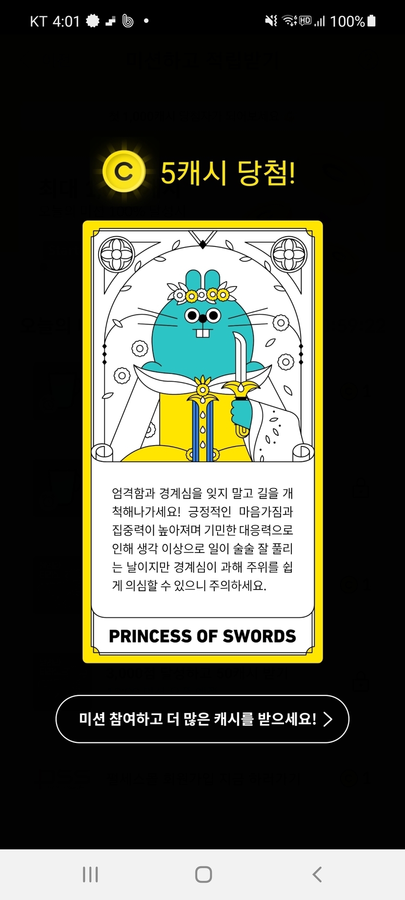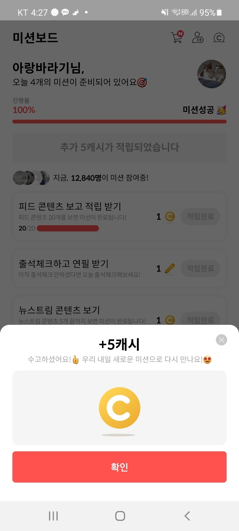 어제 적립한 캐시들