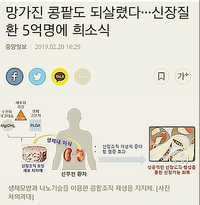 19.12.13 143 읽음 신장투석 희소식 👍 오웬35 구독하기 6 14 콘텐츠의 수익 49 저또한신장환우들에게 희망이 보이네요🙃🙃🙃줄기세포를 이용한 신장재생!!한국일보기사 중ㅡ박우람.한동근 교수님 ! 14 0 / 300 입력