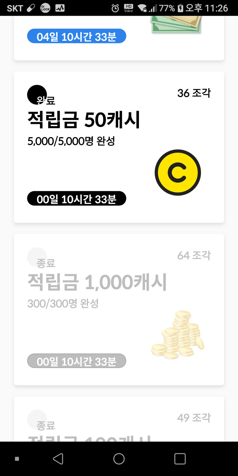 오늘은 50캐시 퍼즐만 완성