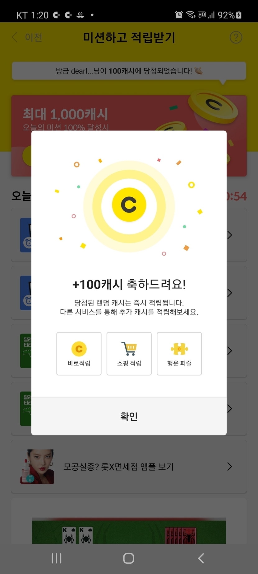 100캐시 당첨 😃😃