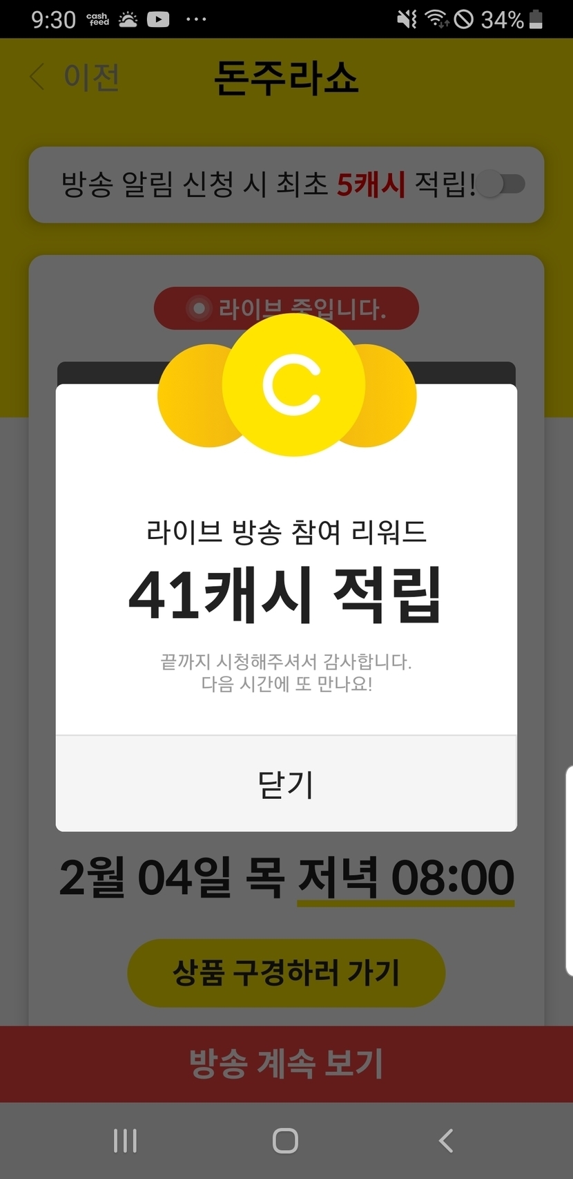 라방시청 리워드 받음