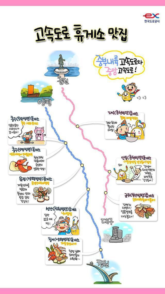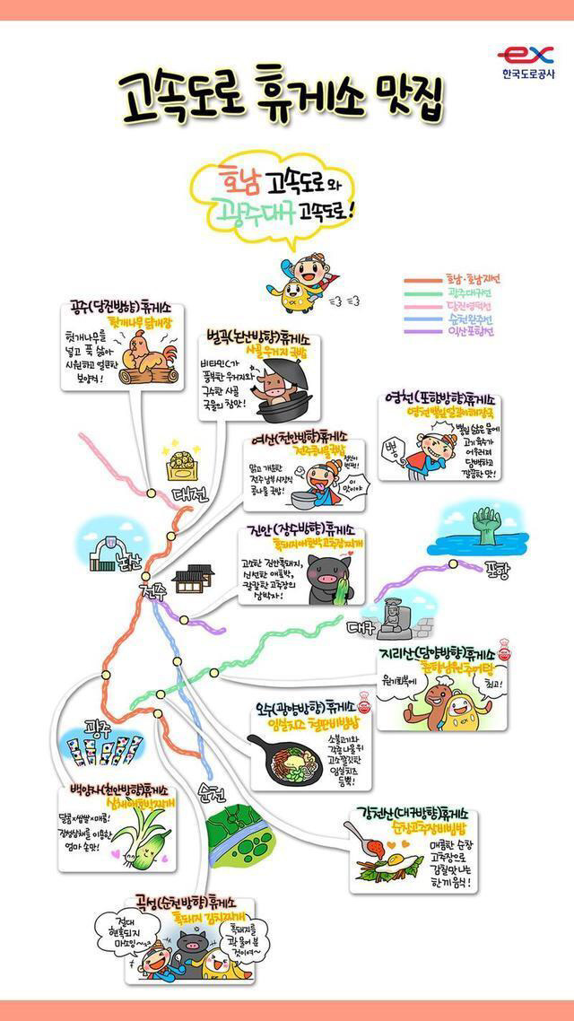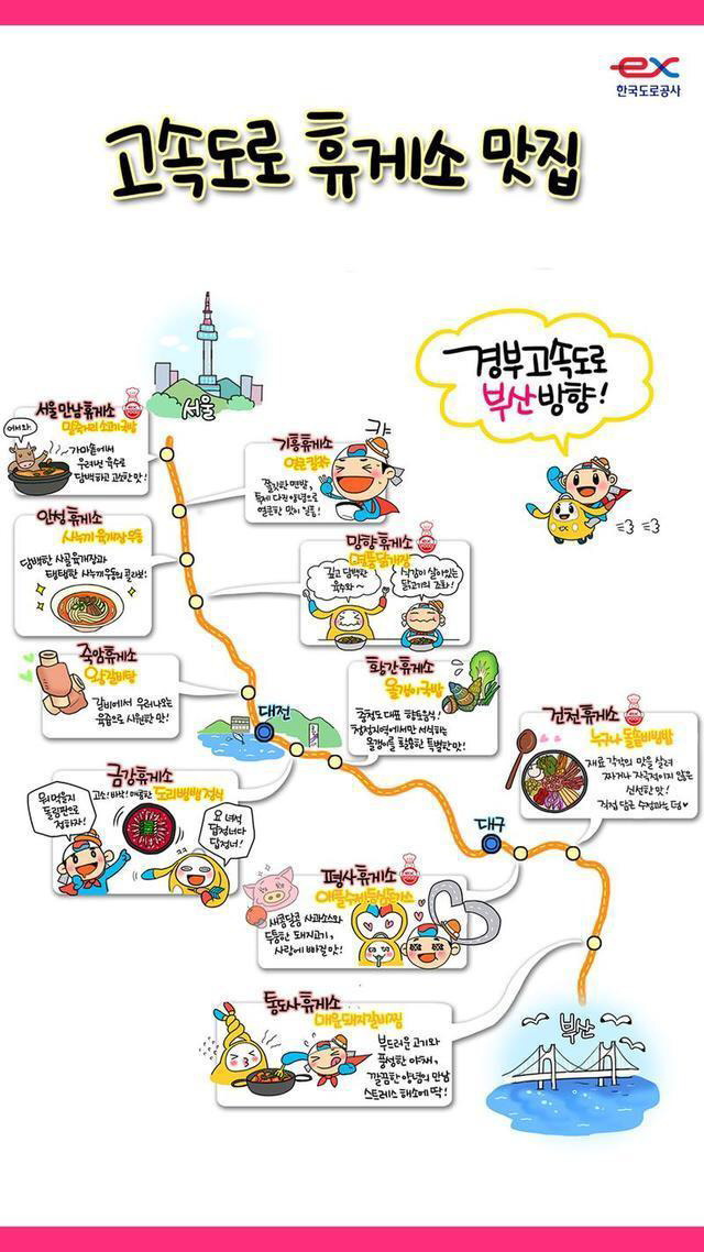 19.12.15 80 읽음 ★그림으로 보는 고속도로 휴게소 맛집★ 나도야~ 구독하기 5 11 콘텐츠의 수익 17 휴게소 맛집하면 어디인지 궁금했던 분들에게 꿀팁 공유!!그림으로 이해하면 되니깐 손쉽게 사용하세요♥고속도로 이용 많으신 분들에게 도움이 되었으면 좋겠습니다♥ 11 0 / 300 입력