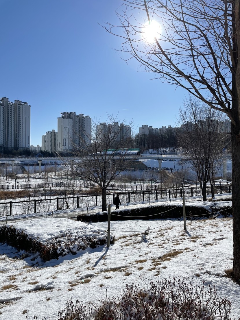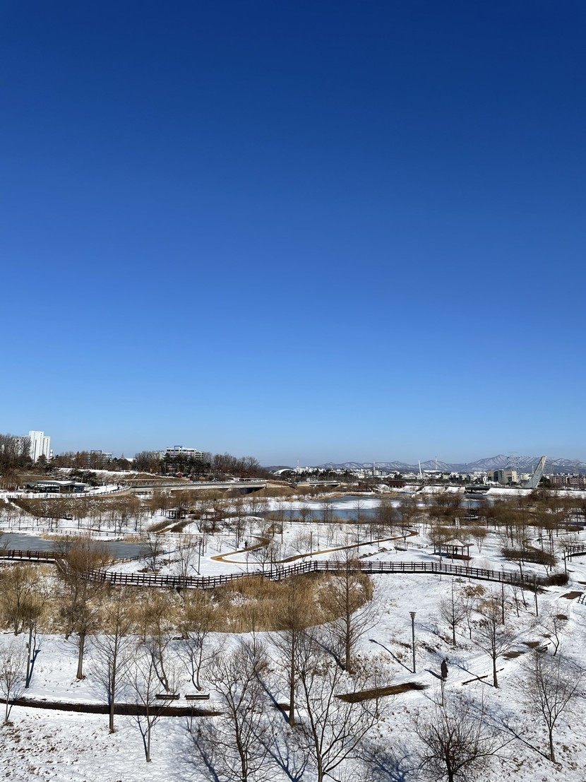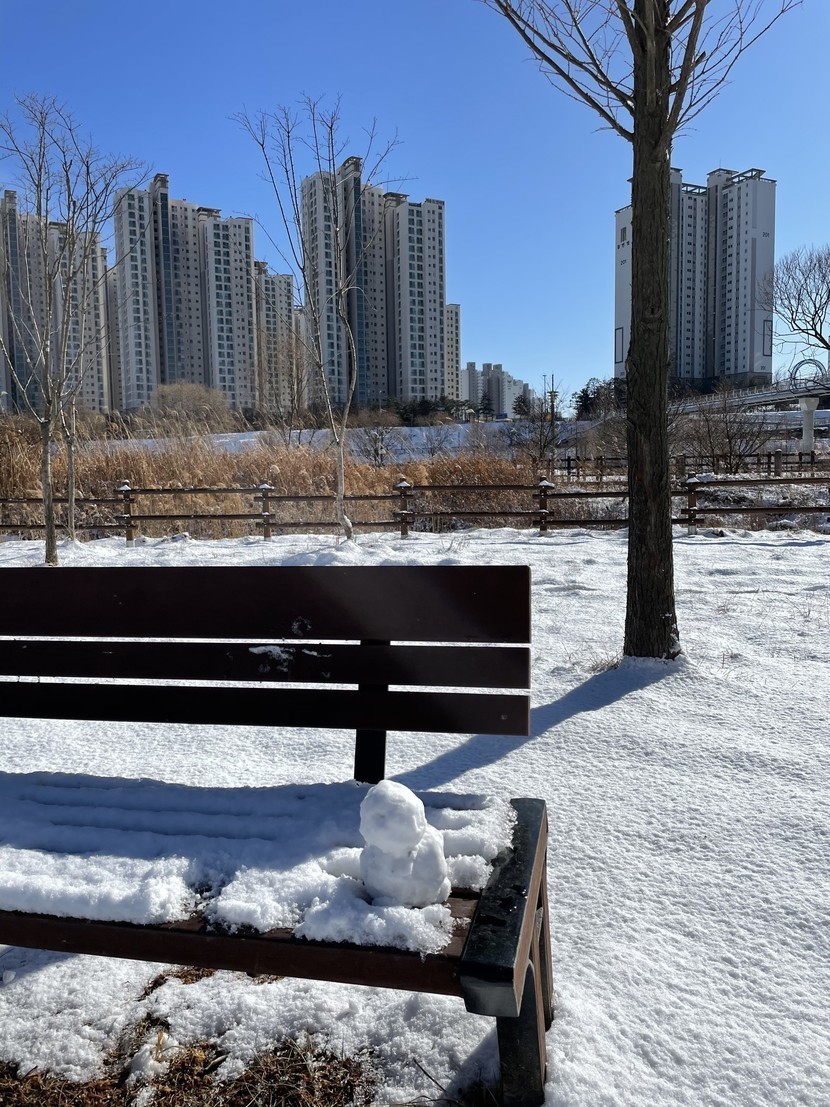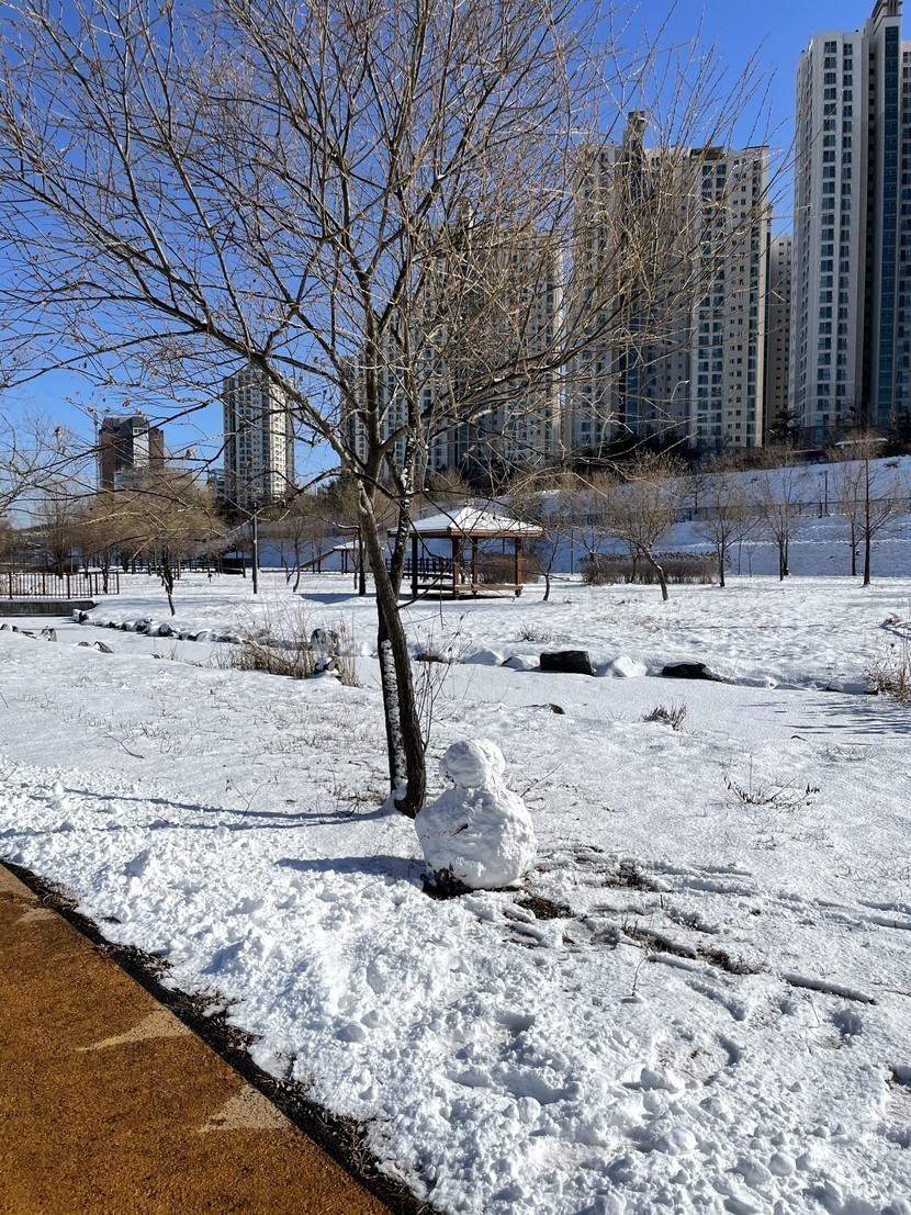 눈덮인 호수공원...