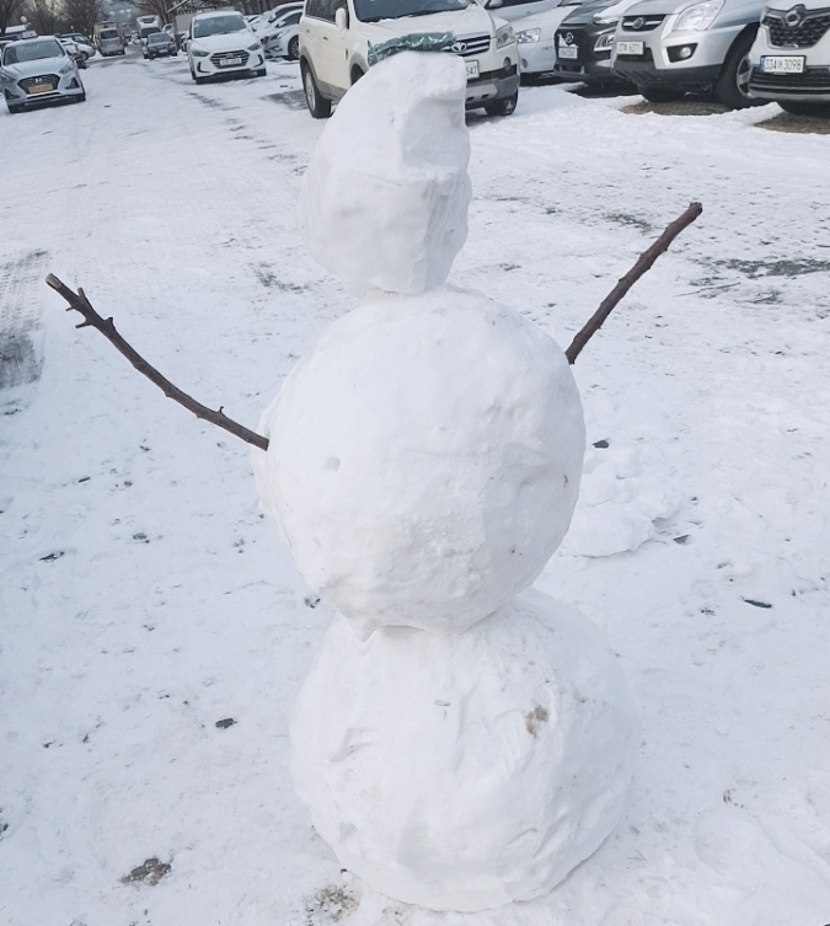 금요일에 출근하는데 집앞에 저렇게 눈사람이 뙄❗⛄⛄⛄⛄