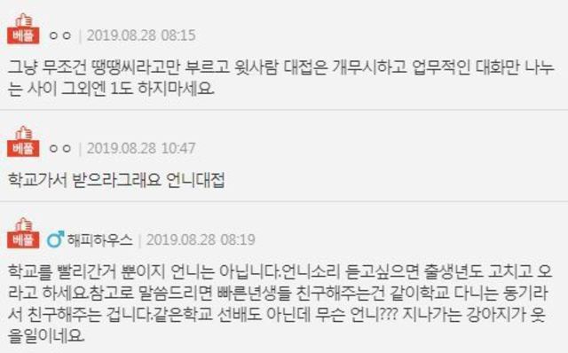제가 그동기에게 언니란 칭호를 써야할 의무가 없다고 생각합니다.