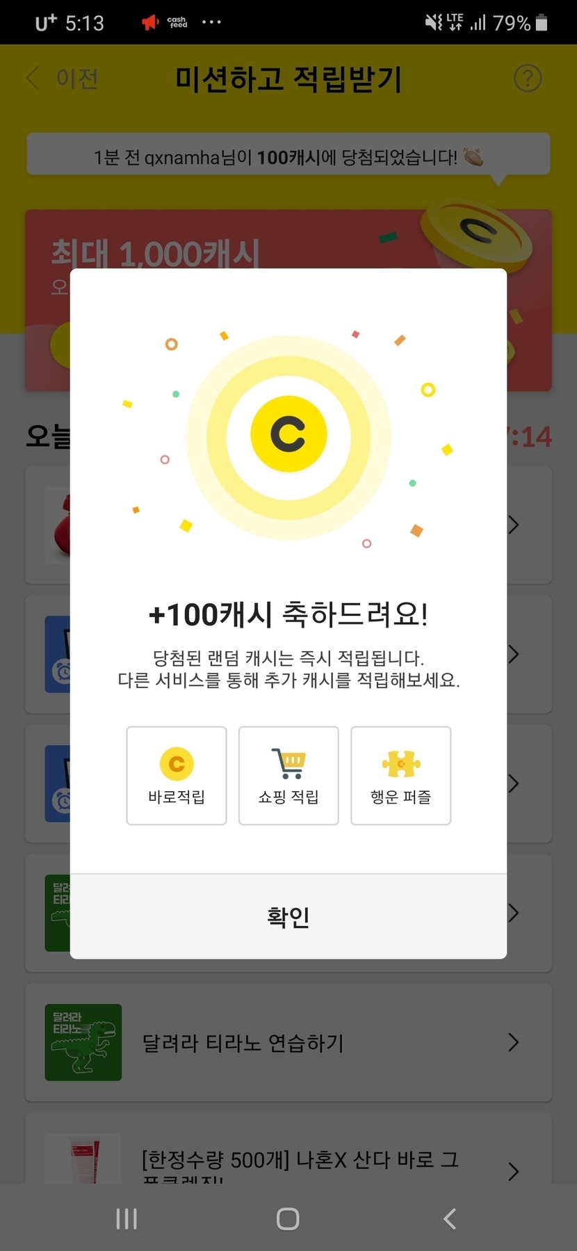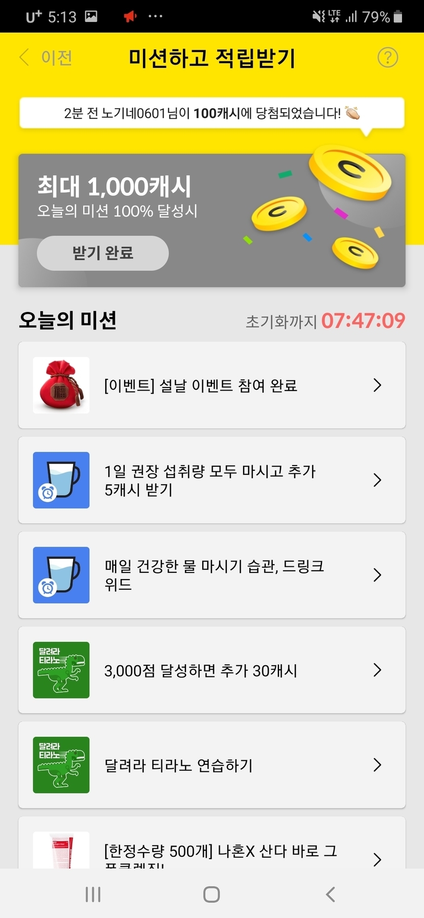 어제 미션 100케시~~ ㅎㅎ