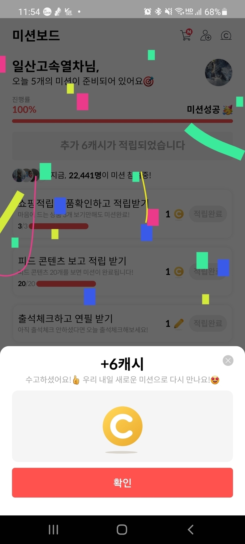 오늘 미션 완료했습니다.