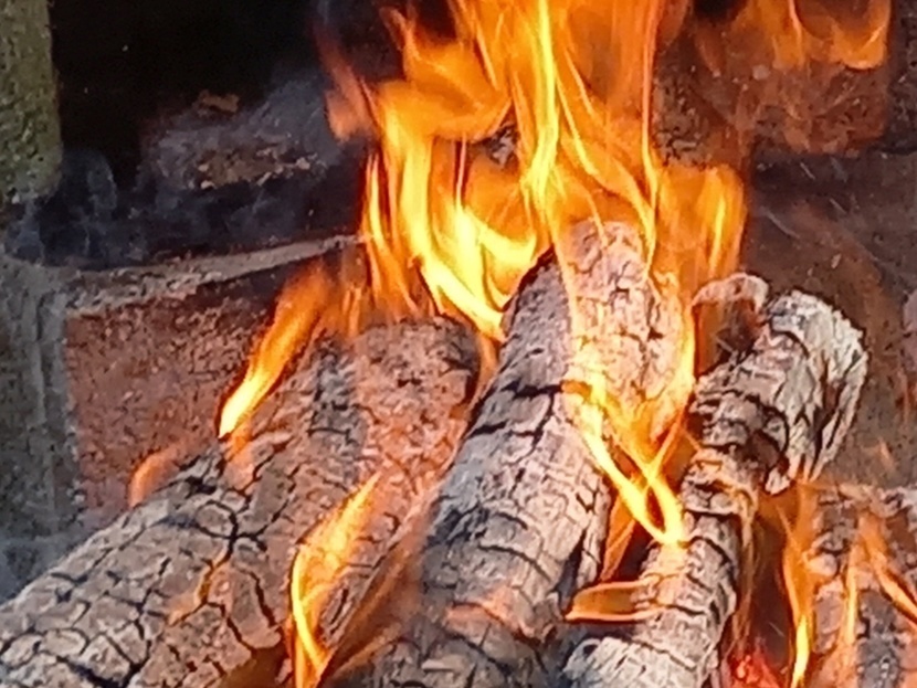 시골 마당에서 캠프파이어했어요.