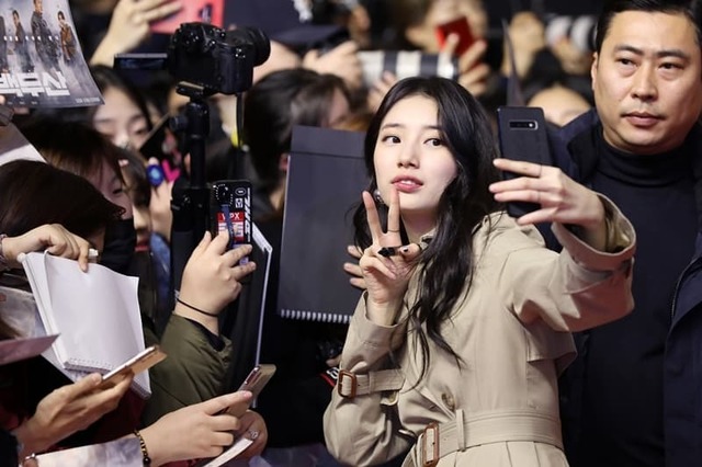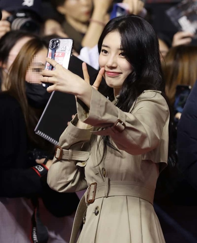 수지는 코트를 입고 스타일리시한 면모를 드러냈다. 수지는 긴 생머리로 청순함과 함께 귀여운 표정을 보여 독보적인 비주얼까지 뽐냈다.