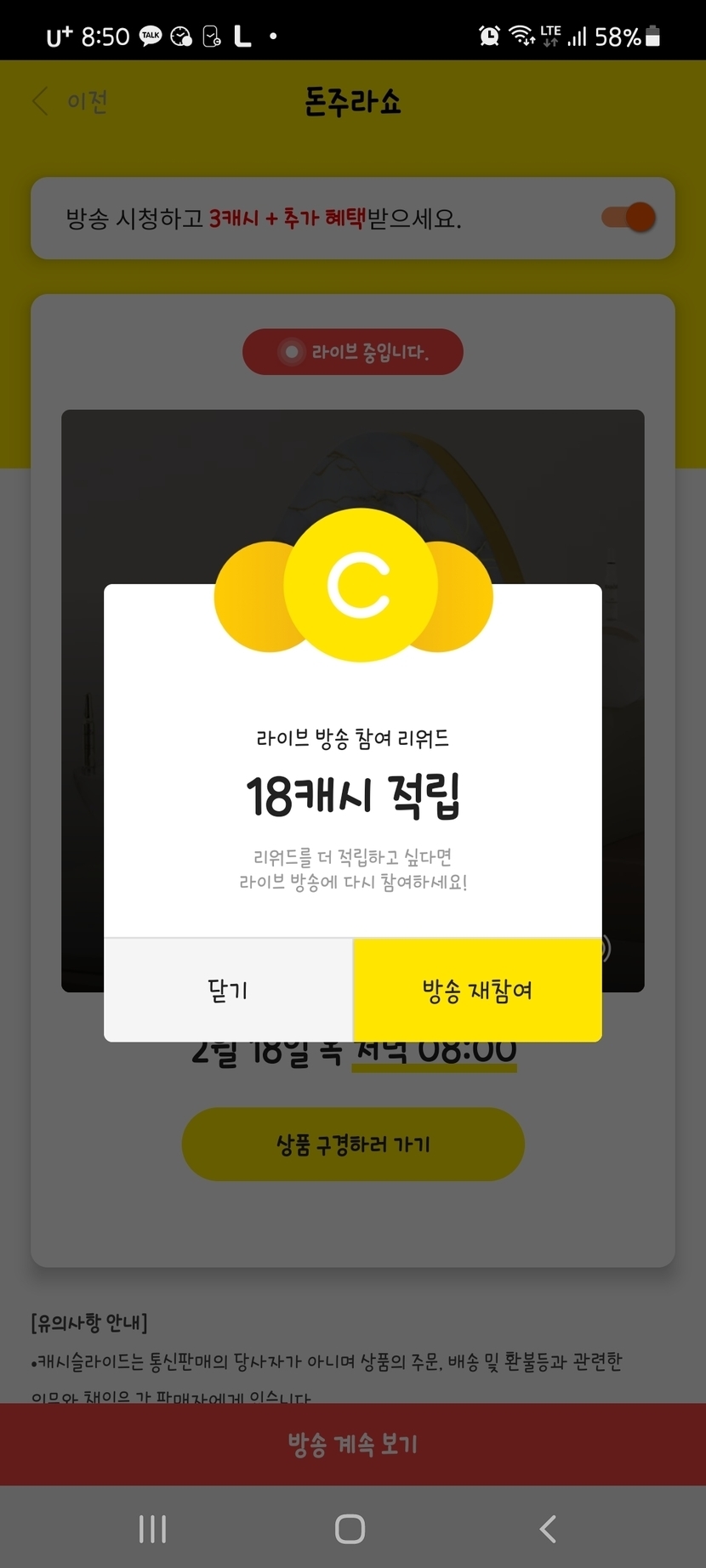 캐시슬라이드 돈주라쇼 미션완료