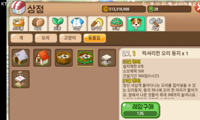 으리오리는 하루마다 레알1씩 주는데 농장에 배치가능한건 7마리가 최대죠