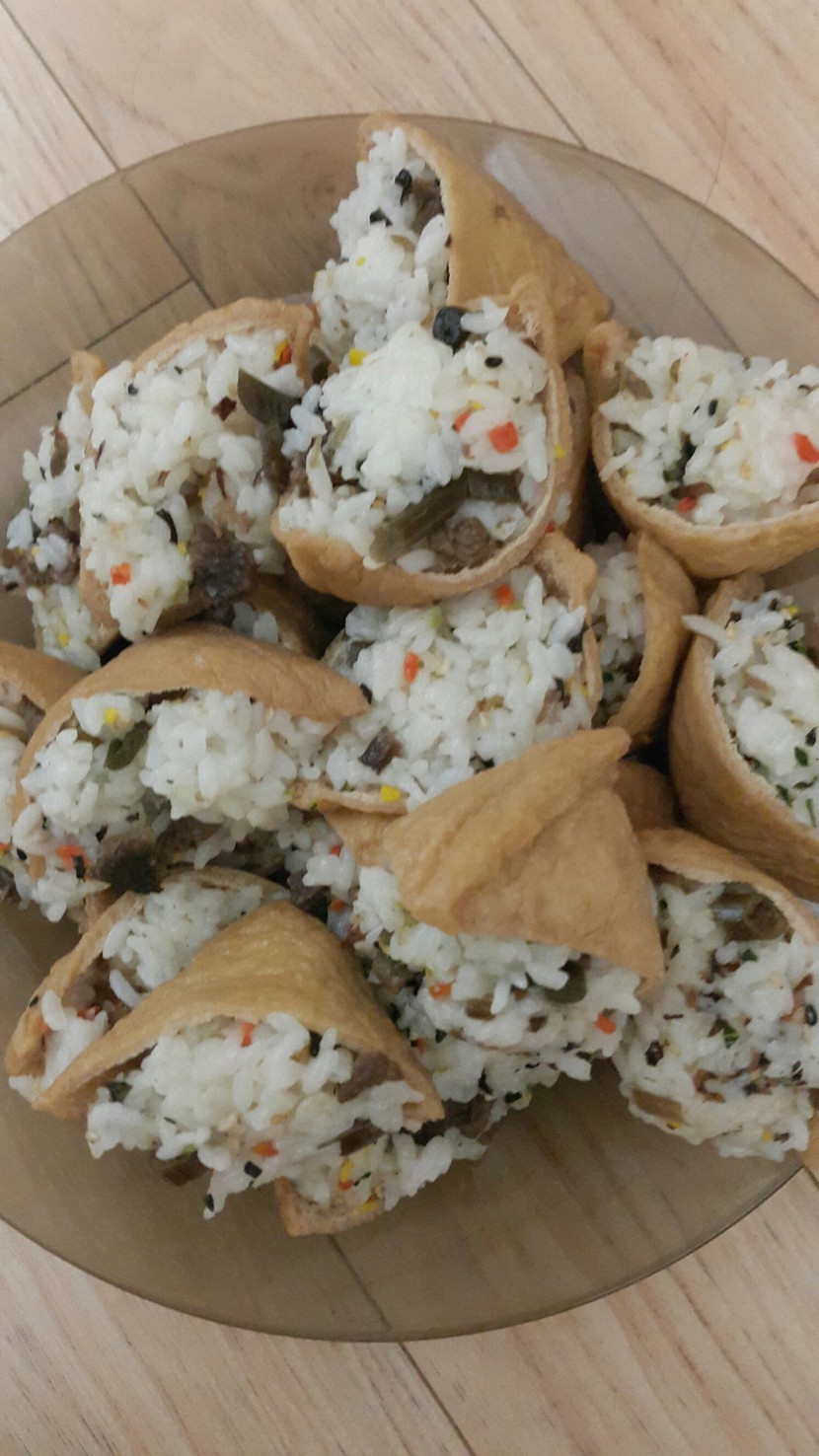 21.02.25 77 읽음 유부 초밥 sug0119 구독하기 8 6 콘텐츠의 수익 5 딸이 만든 유부 초밥.제법 먹을 만 합니다.오늘은 소고기도 넣었다네요.유부 초밥은 딸이 자주 만드는 메뉴중 하나입니다.파스타도 자주 만들고 카레도 자주 합니다. 6 0 / 300 입력