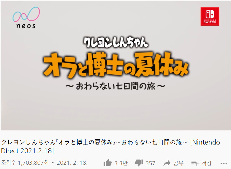 2. <나의 여름방학> 시리즈의 후속작이 12년째 나오지 않고 있음즉 <크레용 신짱 나와 박사의 여름방학 ~끝나지 않는 7일간의 여행~>은 12년 동안 후속작이 출시되지 않은 게임 시리즈의 정신적인 후속작이라는 측면에서도 기대감을 더해주었다는 것.