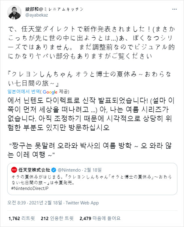 그리고 게이머 입장에서 좀 더 깊게 파고 보면 아래와 같은 이유도 있습니다.1. <나의 여름방학> 시리즈 핵심 개발자 '아야베 카즈'가 개발에 참여