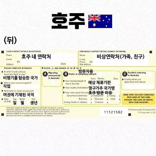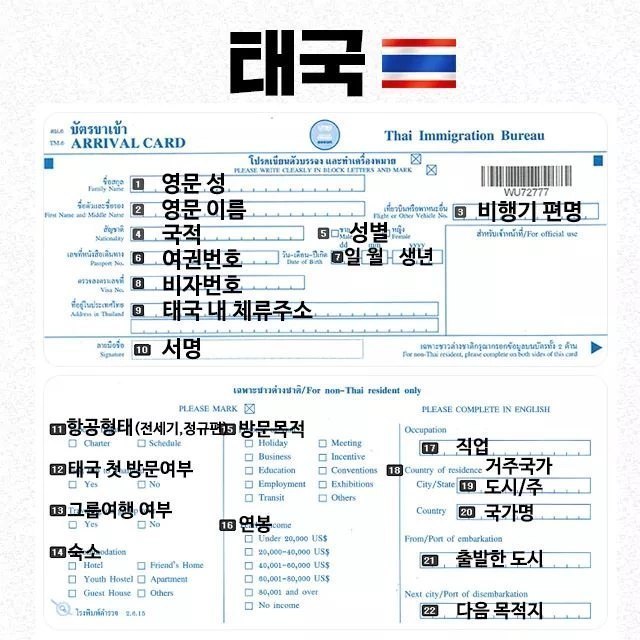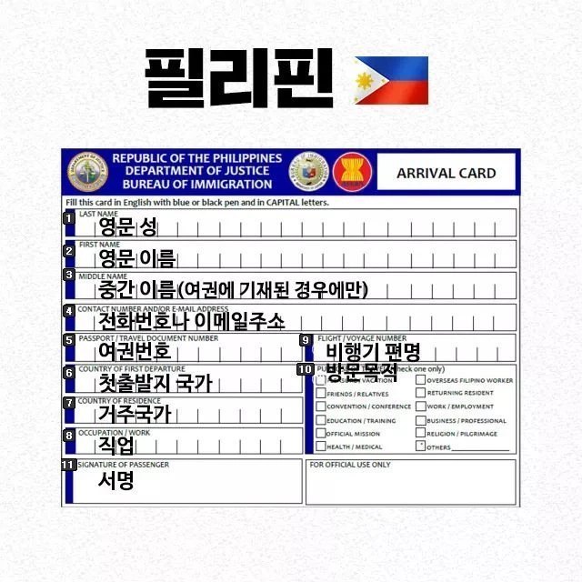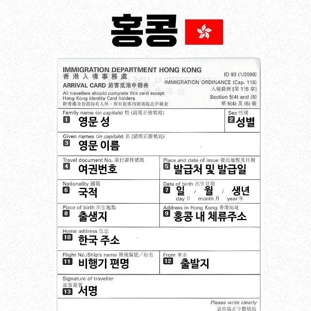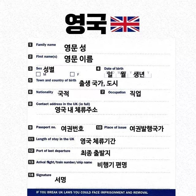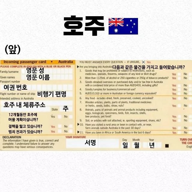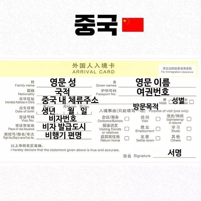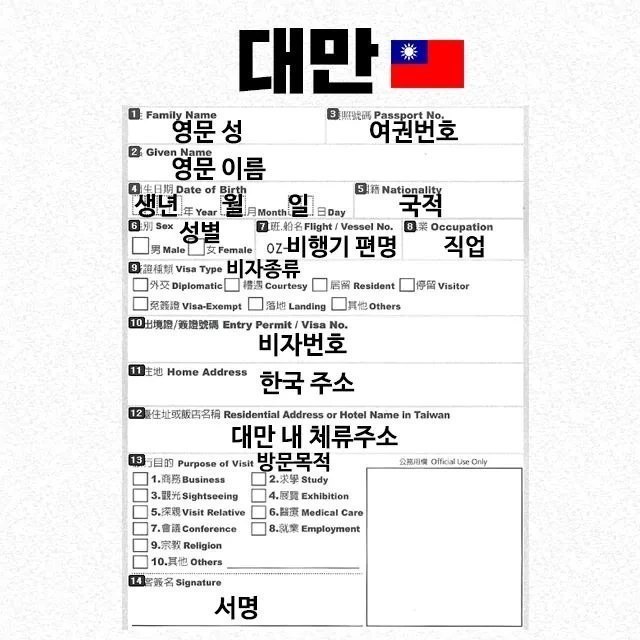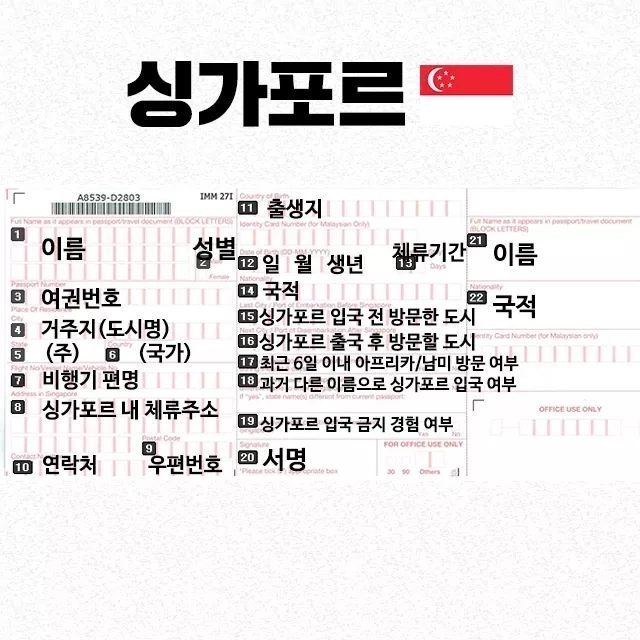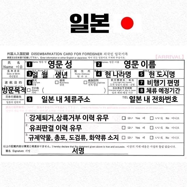 나라별 출입국신고서 빠르게쓰는법