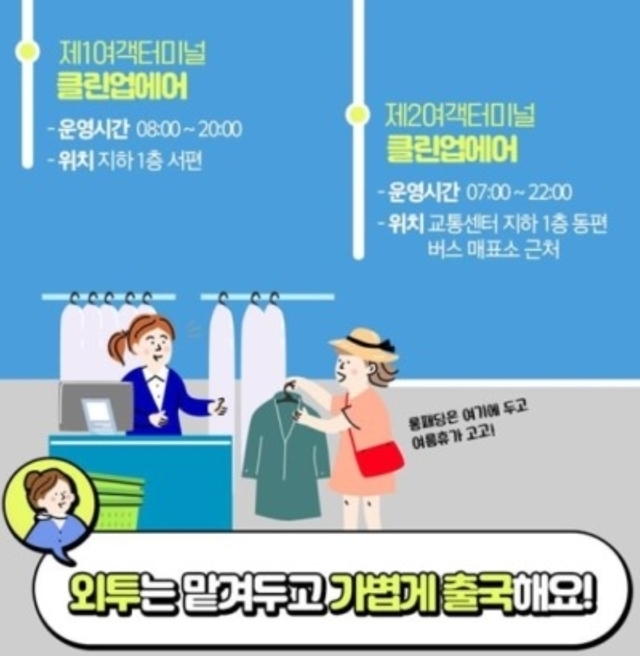 제2여객클린업에어 교통센터 지하1층 동편 버스 매표소 근처 운영시간 오전 7시~ 오후 10시까지