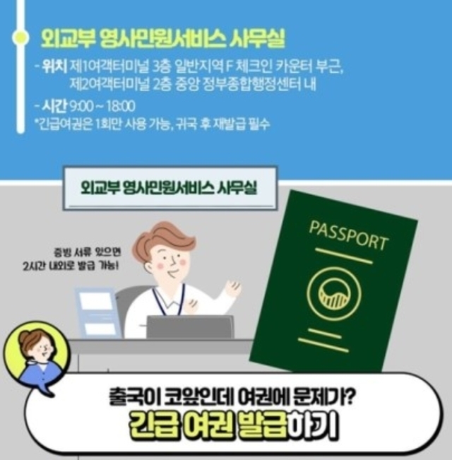 에서 발급 받으실 수 있으며 1회만 사용가능, 귀국 후 재발급 필수