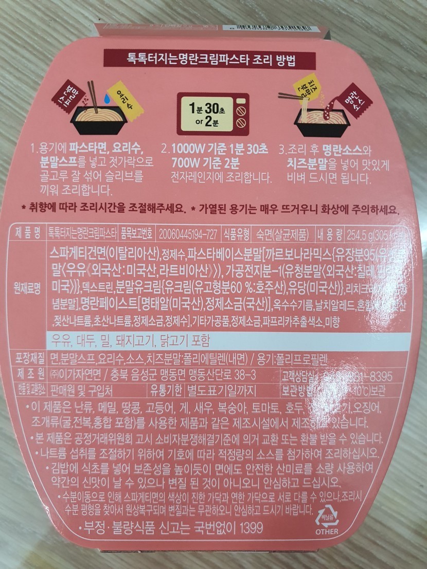 21.02.26 276 읽음 [내돈내산] 명란 크림 파스타 🥰행복😊 구독하기 19 18 콘텐츠의 수익 13 gs25 편의점에 있길래 궁금해서 사왔어요섞기 전에 분말스프를 살짝 먹어보니 크림스프 맛 비슷하고,명란소스는 양념 안 한 진미채 먹을 때 향이 났어요조리 후 섞어서 먹으니 고소하고 짭조름한 맛이에요(저는 흰 우유를 조금 부어서 짠맛을 조절했어요)바게트 빵 살짝 구워서 소스에 찍어 먹고 싶은 맛이에요~ 18 0 / 300 입력
