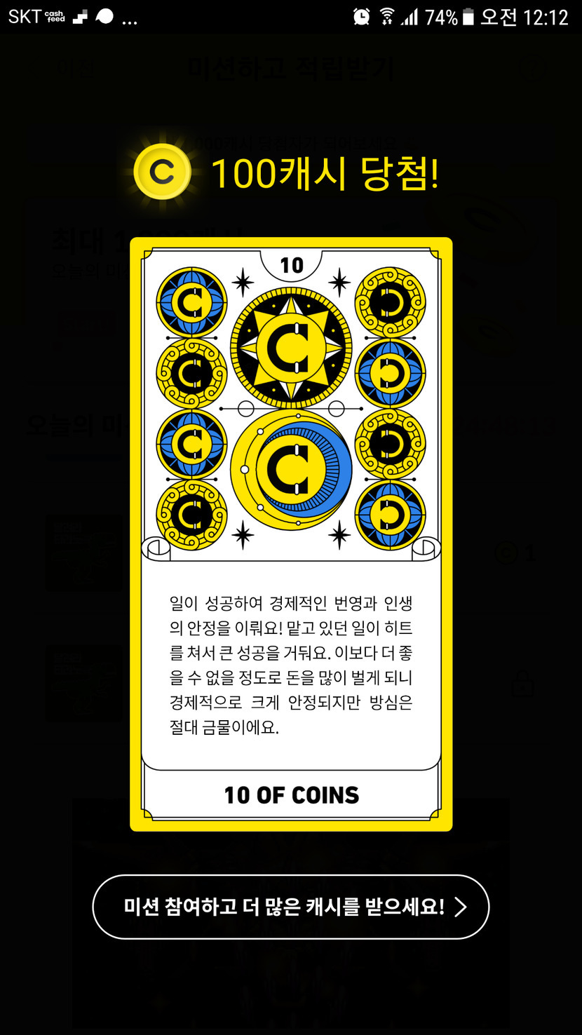 미션100캐시 당첨