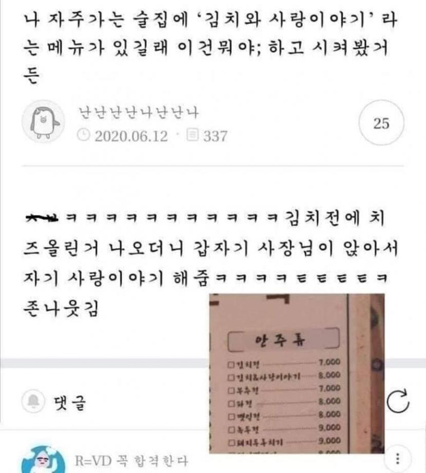 술집에 이상한 메뉴가 있어서 시켜봄