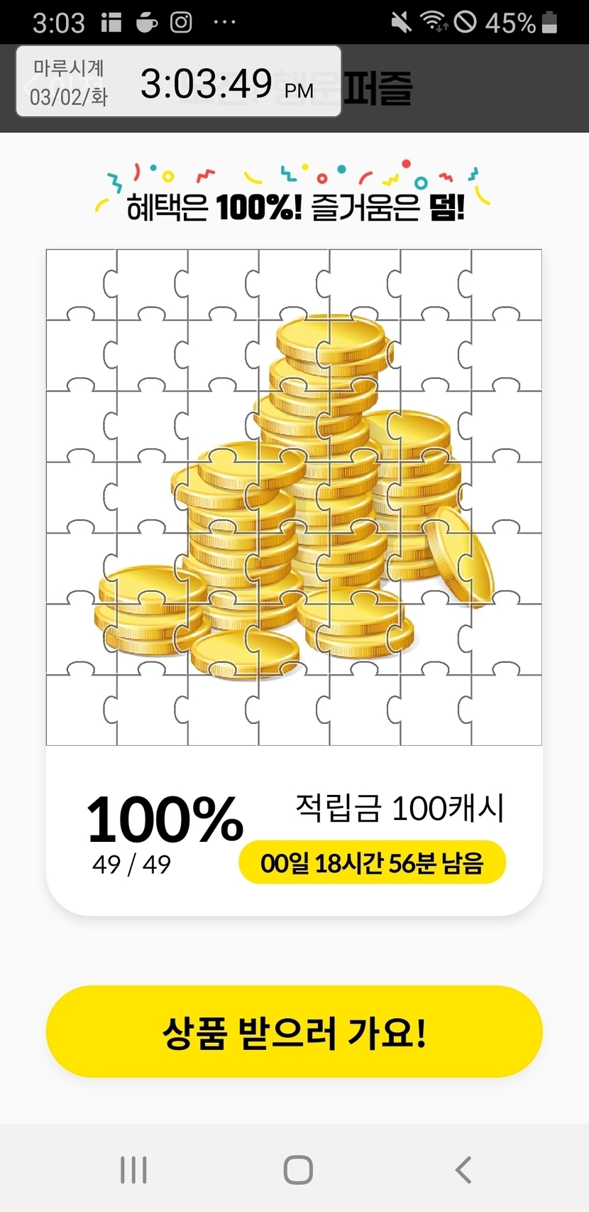 νΌμ¦μ λνμ ν©ν΄μ 18κ° μ±κ³΅ν΄μ κ·Έλ§ν λ €λ€κ° 'λͺ» λ¨Ήμ΄λ κ³ 'νκ³ μκ°λ§λ€ νλλ° 3μμ 8κ° λ¨μλλ° κ°κΉμ€λ‘ μ±κ³΅νλ€μ~ νΌμ¦ μ°Έ νλ λ° λμμκ° μμ΄μ^^ ν볡ν μ€ν λμΈμ ~