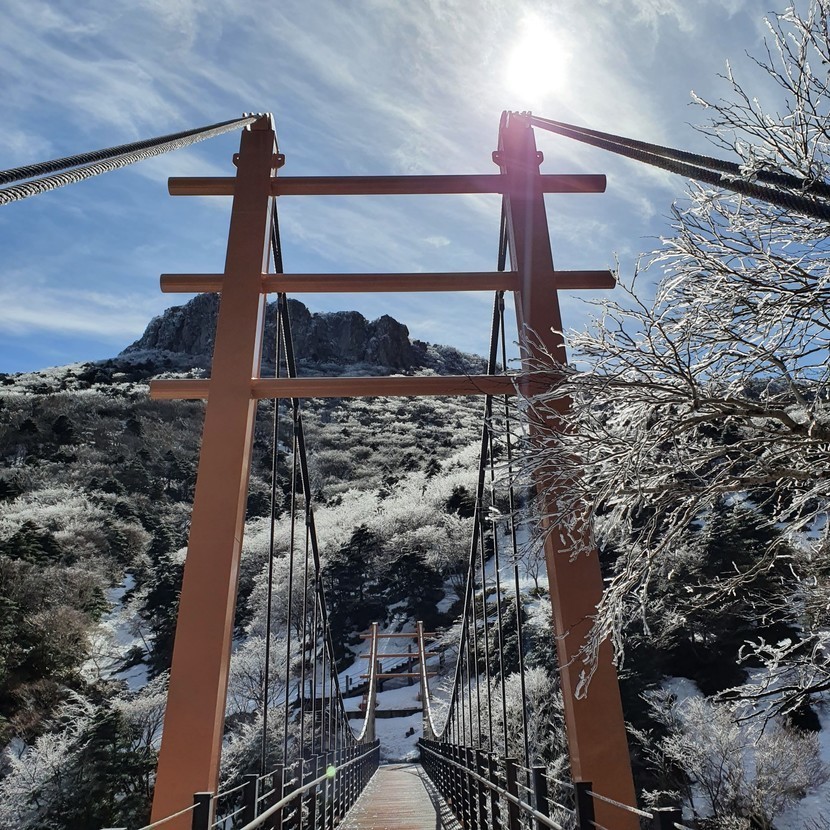한라산에는 눈과 얼음이 아직 많아요