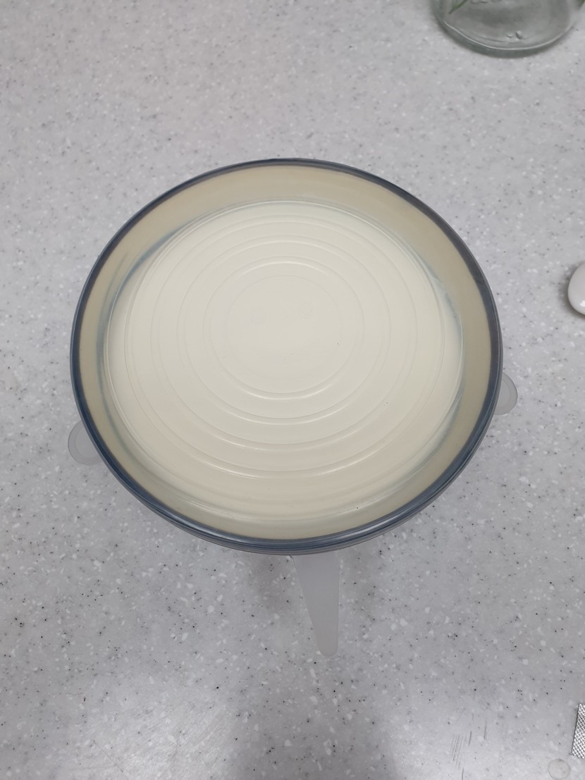 적당한 사이즈의 용기가 없어서 그냥 적당한 사이즈로 보이는 유리그릇과 다용도 실리콘 뚜껑으로 준비했어요.