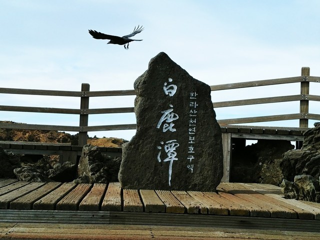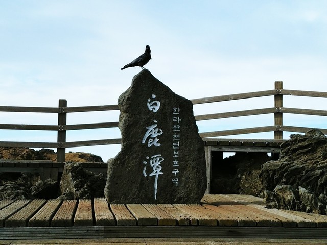 한라산 백록담을 지키는 있는 까마귀.