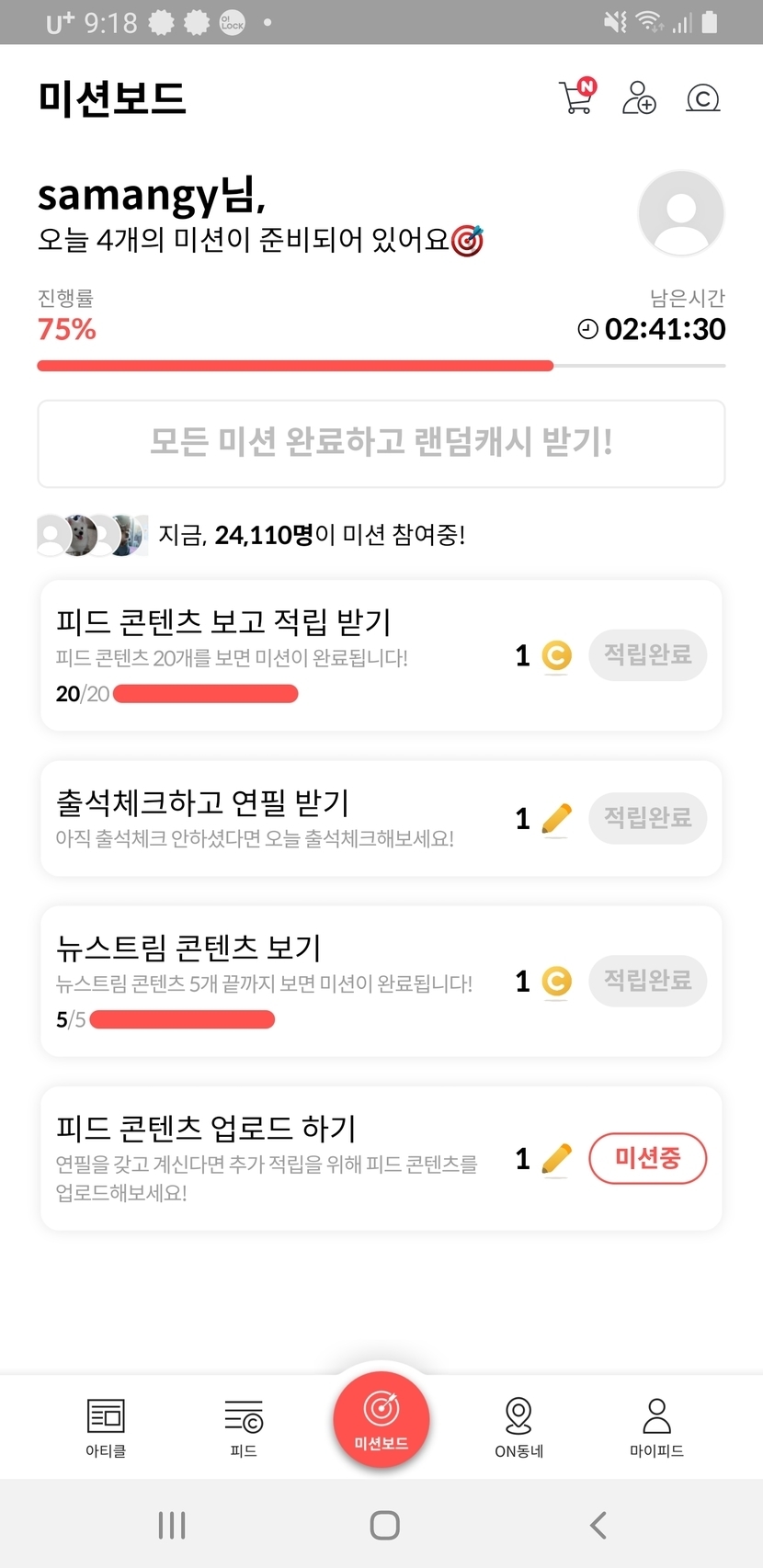 21.03.04 327 읽음 목요일 미션 samangy 구독하기 115 109 콘텐츠의 수익 48 랜덤 미션은 업로드 미션이 있어서 성공은 아니지만 크게 기대를 하는건 아니라서...^^;모두들 편한밤 보내시구요 늘 행복하세요 109 0 / 300 입력