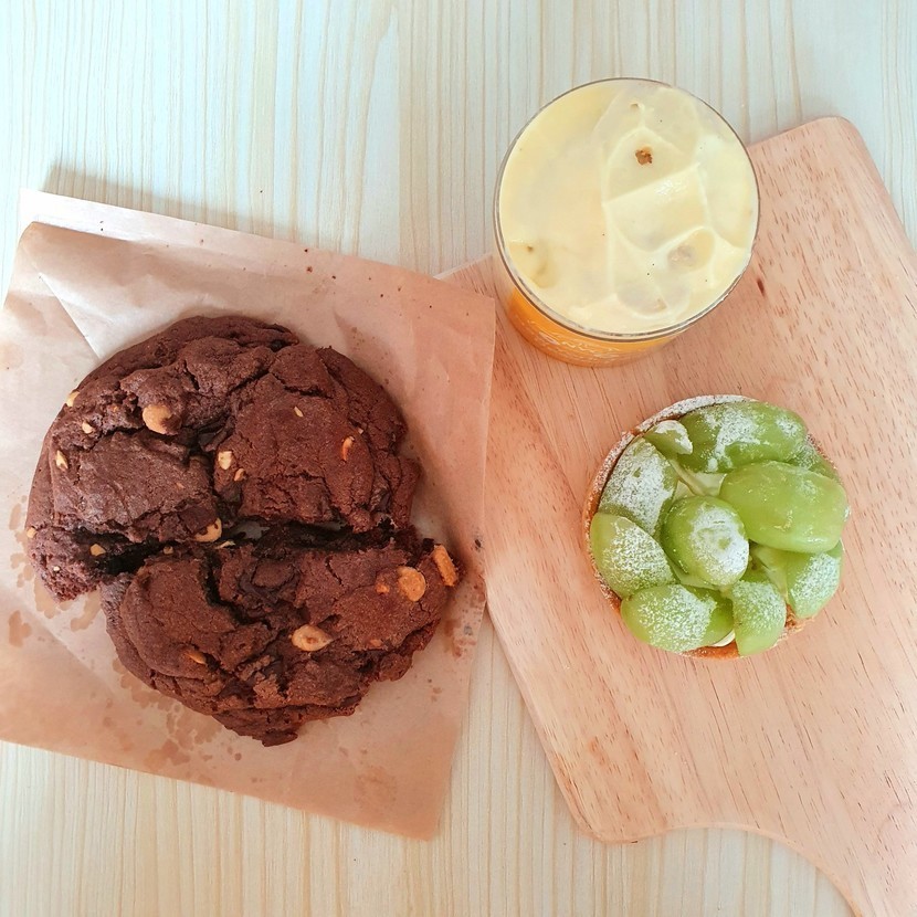 청포도 타르트는 타르트지는 바삭바삭하고 안에 크림은 치즈 맛이 진하게 났어요. 위에는 싱싱한 청포도가 가득 올라가 있는데 청포도랑 크림이랑 잘 어울렸습니다. 상큼해서 같이 시킨 다른 메뉴와 먹기 너무 좋았어요.