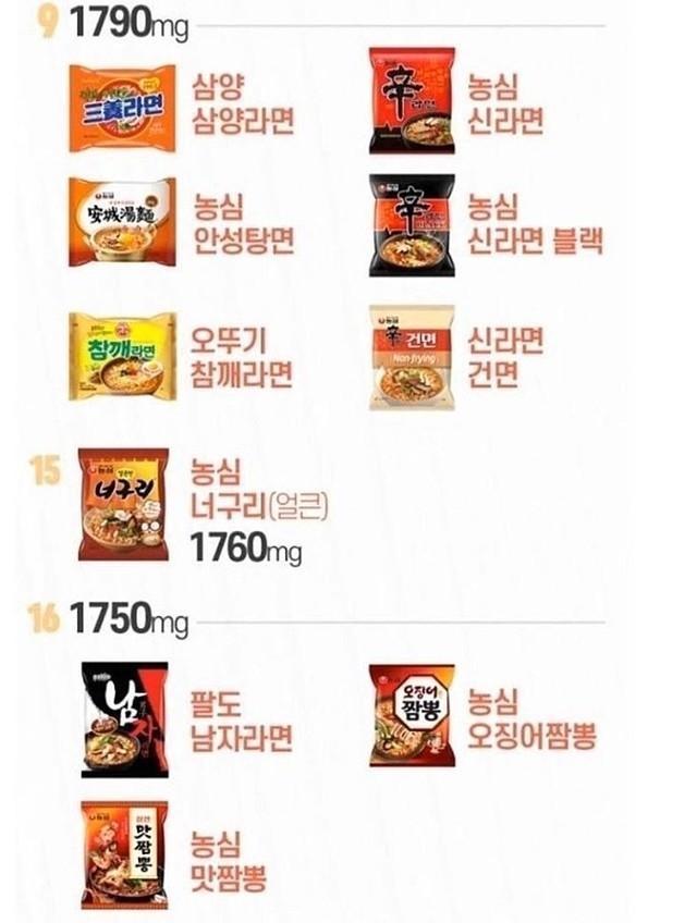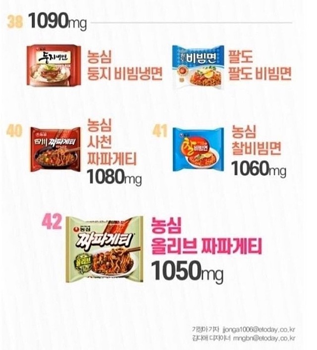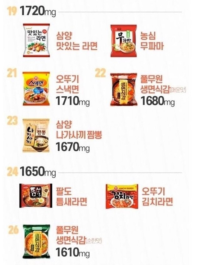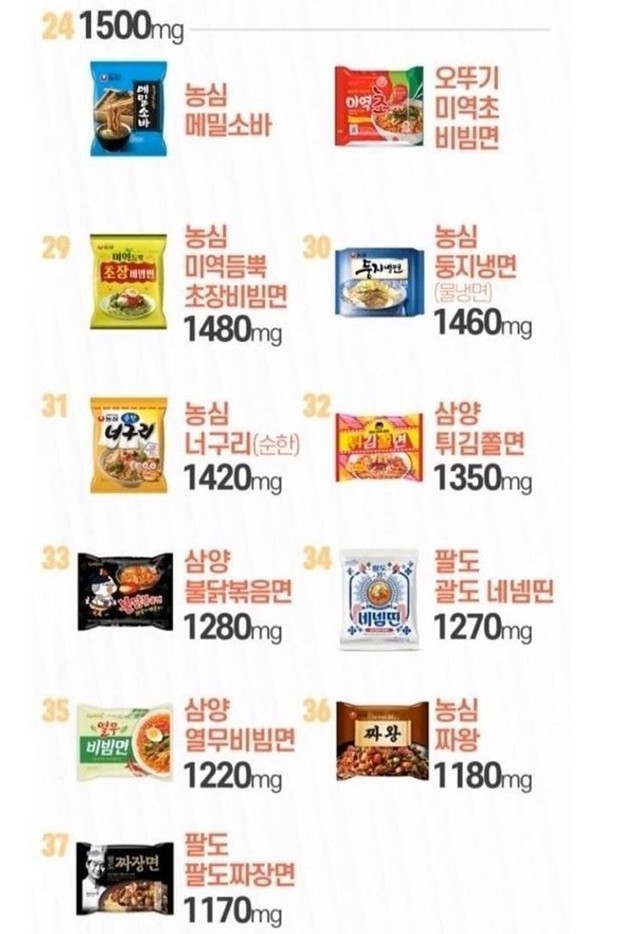 ☆라면 42종 나트륨 순위!!!☆