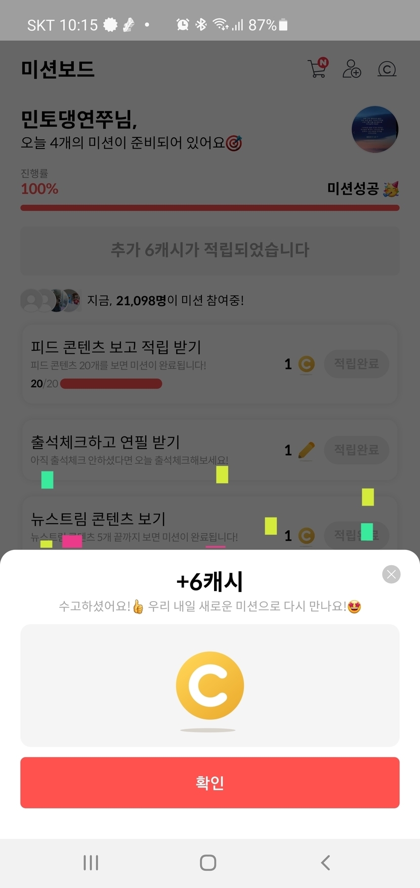 오늘도 미션 완료