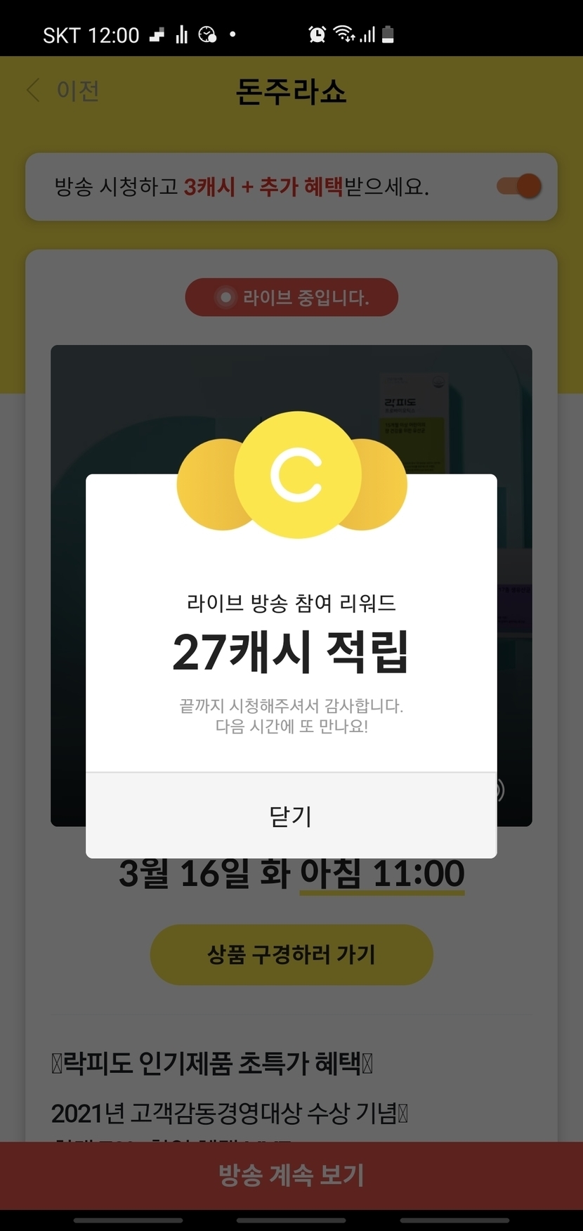 3/16 돈주라쇼 시청완료!