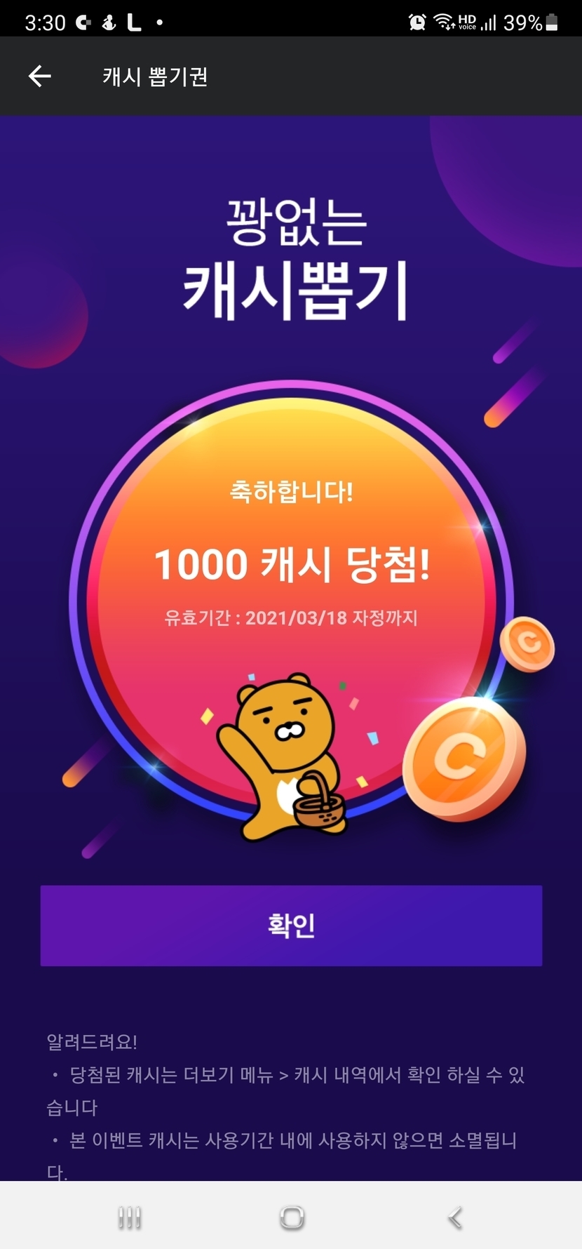 21.03.18 14 읽음 연필소진용 moonlight78 구독하기 1 1 콘텐츠의 수익 1 카카오페이지 최대1000캐시 랜덤쿠폰에서 1000캐시 나온건처음이네요 ㅎㅎ 이런게 소확행인가요? 1 0 / 300 입력