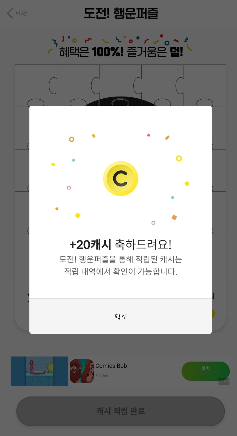21.03.18 76 읽음 3/18 행운퍼즐! ryehan 구독하기 0 1 콘텐츠의 수익 3 오늘의 행운 퍼즐 수확!100캐시만 제외하고 모두 성공했어요ㅎㅎ100캐시는 꼭 마지막에 실패하길래 50캐시부터 시작해봤어요.매번 시간 멍때리다가 50이랑 10만 성공했는데 이번엔 100캐시만 제외하고 모두 성공해서 자랑하러ㅎㅎㅎ!10캐시는 막판에 오류가 생겨서 그 순간을 못 잡았네요! 1 0 / 300 입력