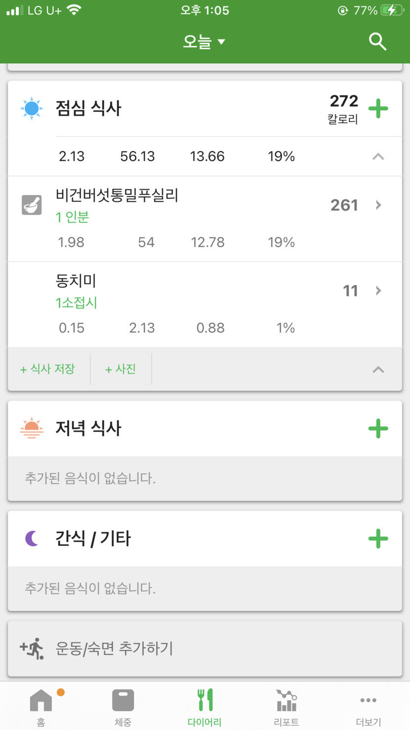 앱에 입력해보니 배터지게 먹어도 260칼로리네요.