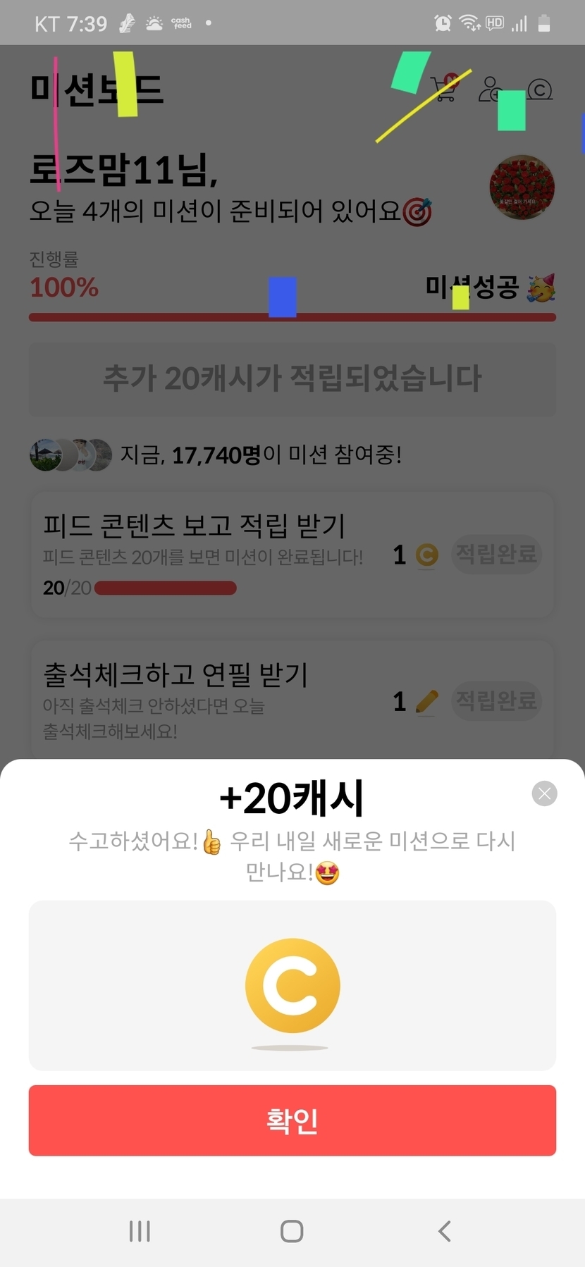 미션성공 20캐시ㅋㅋ