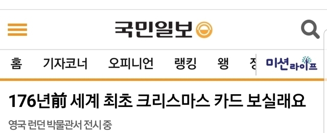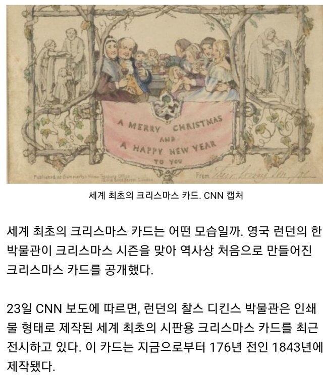 19.12.25 215 읽음 신기신기!!! 176년전 세계 최초 크리스마스카드 yjslhj1007 구독하기 6 13 콘텐츠의 수익 73 176년전 세계 최초 크리스마스 카드 - 영국런던박물관서전시 중(국민일보 기사) 13 0 / 300 입력