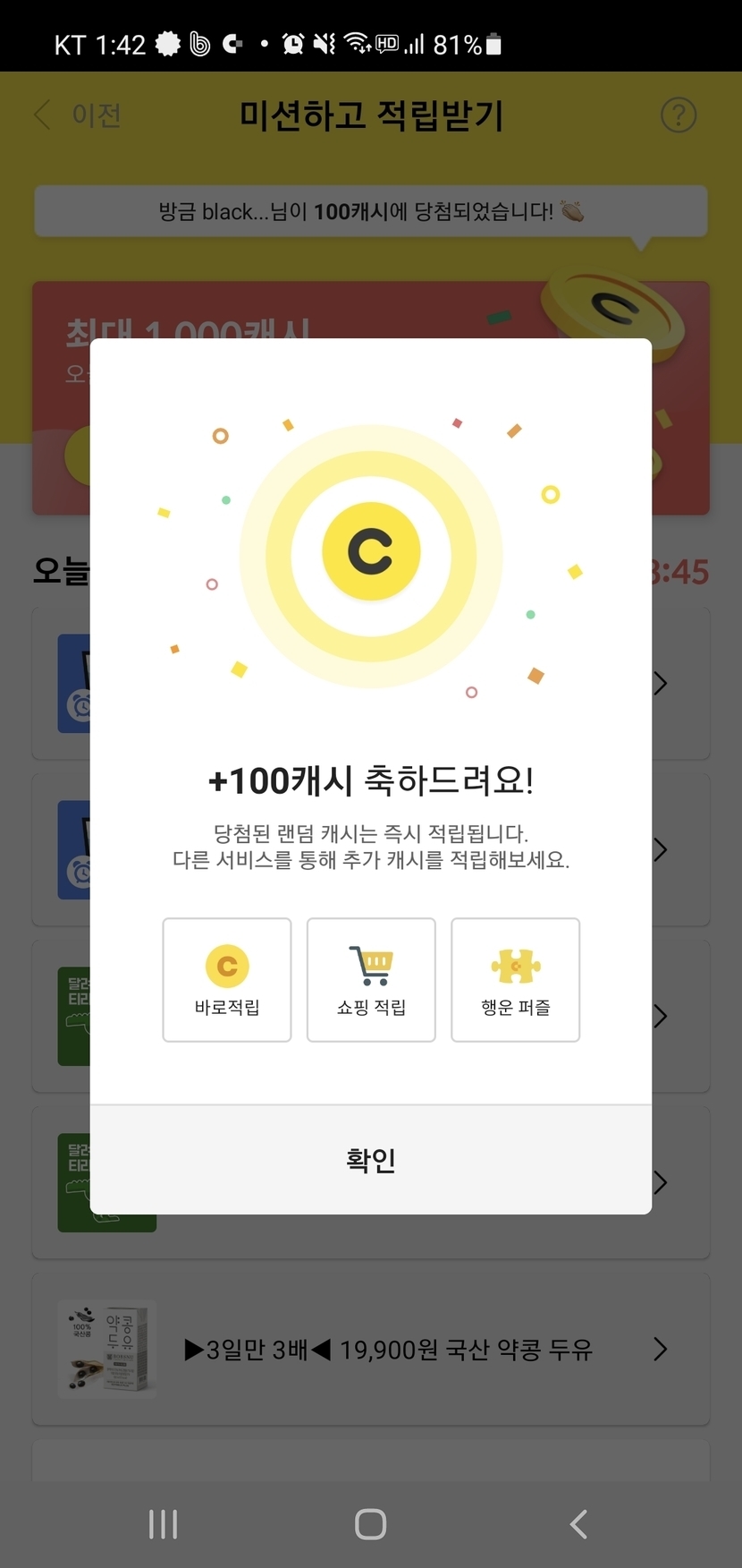 미션달성 100캐쉬