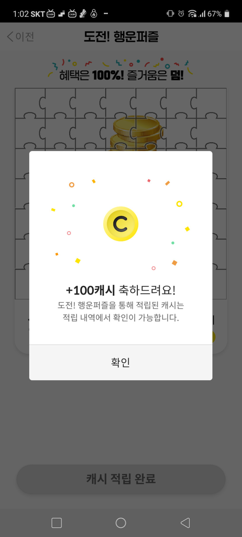 오랜만의 퍼즐성공!