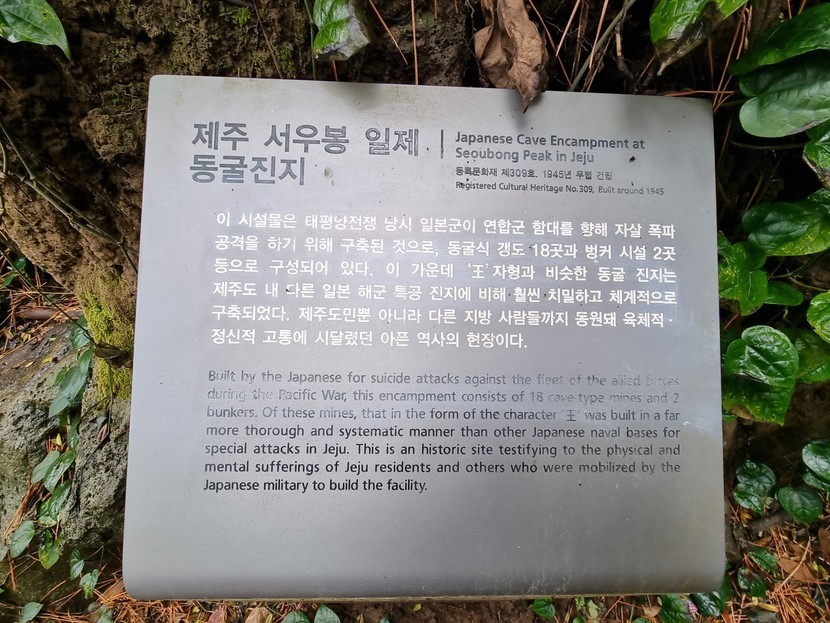 제주 서우봉 일제 동굴진지는 오름 사면의 해안 절벽을 따라 23기가 있으며, 이 중 19기의 진지가 확인 가능한데, 사람이 접근하기 어려운 곳에 있어 보존 상태가 양호한 편이다. 이곳의 동굴진지는 모두 단단한 암반을 동굴식으로 뚫고 만들었는데, 이 가운데 해안가와 맞닿아 있는 갱도는 모두 일직선으로 되어 있다. 동굴진지 갱도들은 공사 진척도에 따라 30m 에 이르는 것도 있지만 10m 내외의 것도 있다. 또 완성도가 다소 떨어지는 것도 있다. 이 가운데 규모가 가장 큰 동굴진지는 해안가에서 한 단 위의 지점에 형성돼 있다. 입구는 동쪽 방향으로 세 곳이 뚫려 있으며, 왕(王)자형과 유사한 구조를 보인다. 왕(王)자형 진지의 경우 총 길이가 110m로, 폭은 310㎝ 내외, 높이는 310㎝ 내외에 이른다. 제주 서우봉 일제 동굴진지는 태평양전쟁 말기 일본 해군 특공부대의 주둔 및 진지 구축 실태를 잘 보여 주는 중요한 역사 현장이라는 점에서 보존 가치가 높은 곳이다.