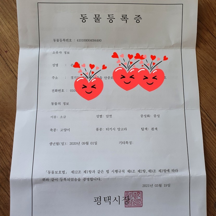 울 소금 등록증 나왔어요~~진짜 울 가족이 되었어요