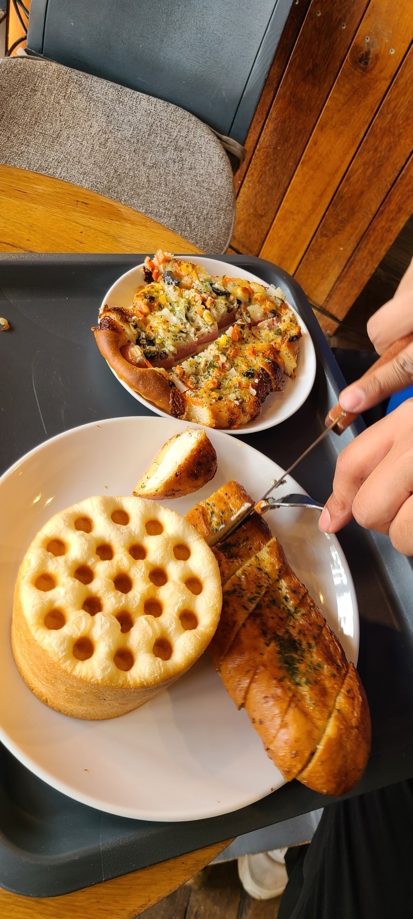 21.04.08 350 읽음 안목해변 카페 맛집 여행하는 뇨자(답방) 구독하기 55 43 콘텐츠의 수익 12 안목해변에 위치한 베이커리 카페 맛집😍연탄빵이라는게 있어서 궁금해서 큰 연탄빵사진만보고 돌진ㅋㅋㅋ오~~~우 의외의 맛이었어요.남자친구가 모 먹을래?해서 전 마늘바게트하나 고르고 나머지는 알아서 고르라했는데 연탄빵을 골라왔는데 속에 치즈가...ㅠㅠ치즈를 싫어하는 저는 한조각만 간신히 먹고 패스하고 마늘바게트와 하나는 이름이 기억이 안나는데 맛있었어요ㅎㅎ 43 0 / 300 입력