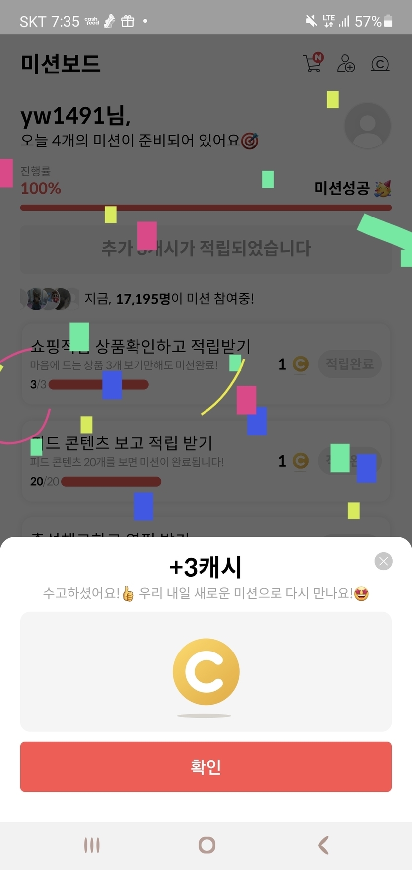 0413 미션인증 100캐쉬는 조아요