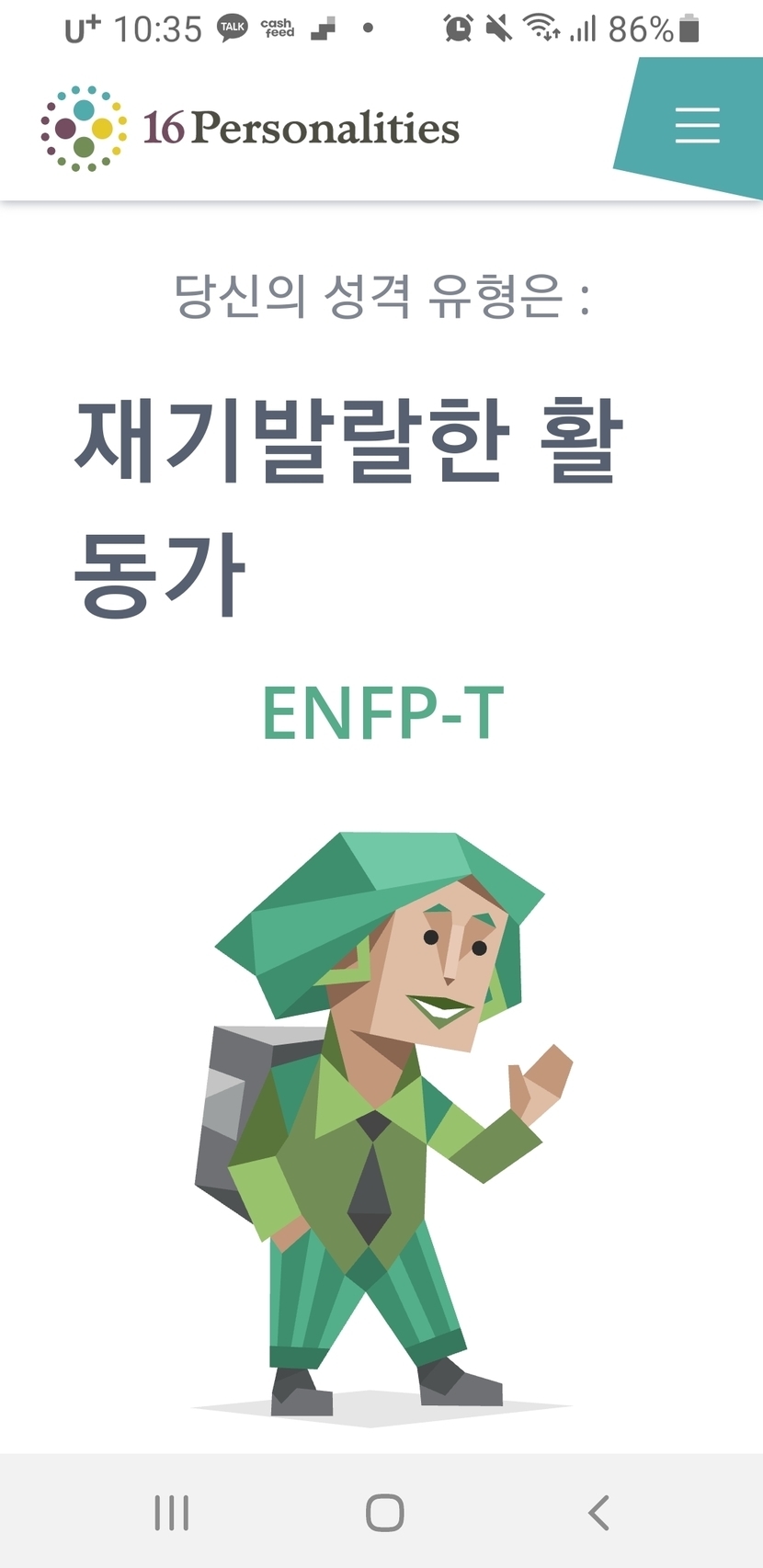 저는 재기발랄한 활동가 ENFP-T 나왔어요~ 🙂🙂🙂