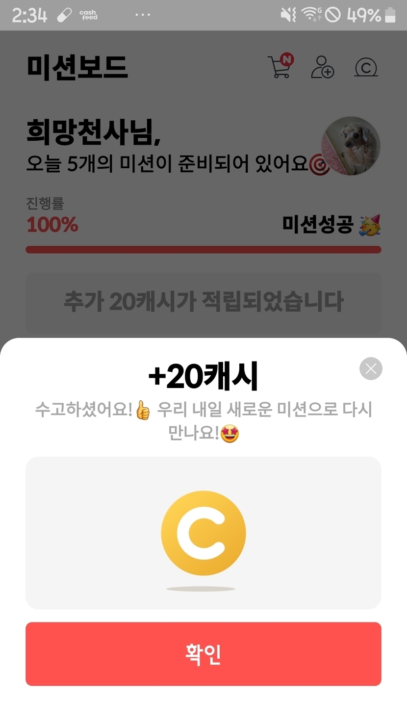 미션보드 랜덤20캐시성공