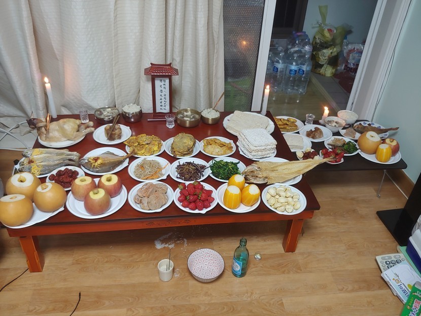 넘 간촐하게 차린듯~제삿상이건 성주상~제삿상과 성주상과 함께어제 아버지.어머니 기일이라고 먼저 말씀드렷졍? 음식은 해놓고 상에 안올린게 많네용~ 불필요할것같아 그냥 올라가는것만 조촐하게 올렷어용~ 혹시 성주상☜에 대해서 모르시는분들이 많으실것같아서 간단하게 말씀드리자면 전라도지방에서는 옛부터 내려오는방식인데 제사를 모실때 따로 상하나를 더 만들어서 혈친조상의 조상신에게 올리는건데 한마디로 신에게 올리는상이라고 보시면됩니당~ 더 궁금한건 네어버에 검색 ㅋ 오늘은 전국곳곳에 소나기가 내리는곳이 잇겟고 곳에따라 강한돌풍과 천둥.번개를 동반한 요란한 비가 내리는곳이 잇겟다네용~ 기온이낮은 산간지방은 비가 우박으로 내리는곳도 잇겟으니 시설물이나 농작물관리에 신경쓰셔야겟고 비의양은 5~10mm로 많지 않겟다네용~ 문제는 미세먼지인데 오후엔 전국에 미세먼지 아주나쁨으로 발령된다네용~ 외출시 꼭 KF80이상 보건용마스크쓰고 나가시고 기온은 어제와 비슷하거나 조금낮아 쌀쌀한 날이 되겟답니당~ 미세먼지는 낼 해소되고 기온도 낼부턴 차츰 올라간다니깐 오늘만 잘 참으시고~ 주말도 건강하고 행복하게 잘 보내세용~^^ %% 지금 구독자분들중에 많은분들이 구독취소가 눌러지고잇어서 맘이아픈데..저도 머 어쩔수없는일이라 이해해주시기바라고 7일이상 제피드 안들어오시면 구독취소 누르니 그렇게아시고~ 모두 홧팅하세용~^^