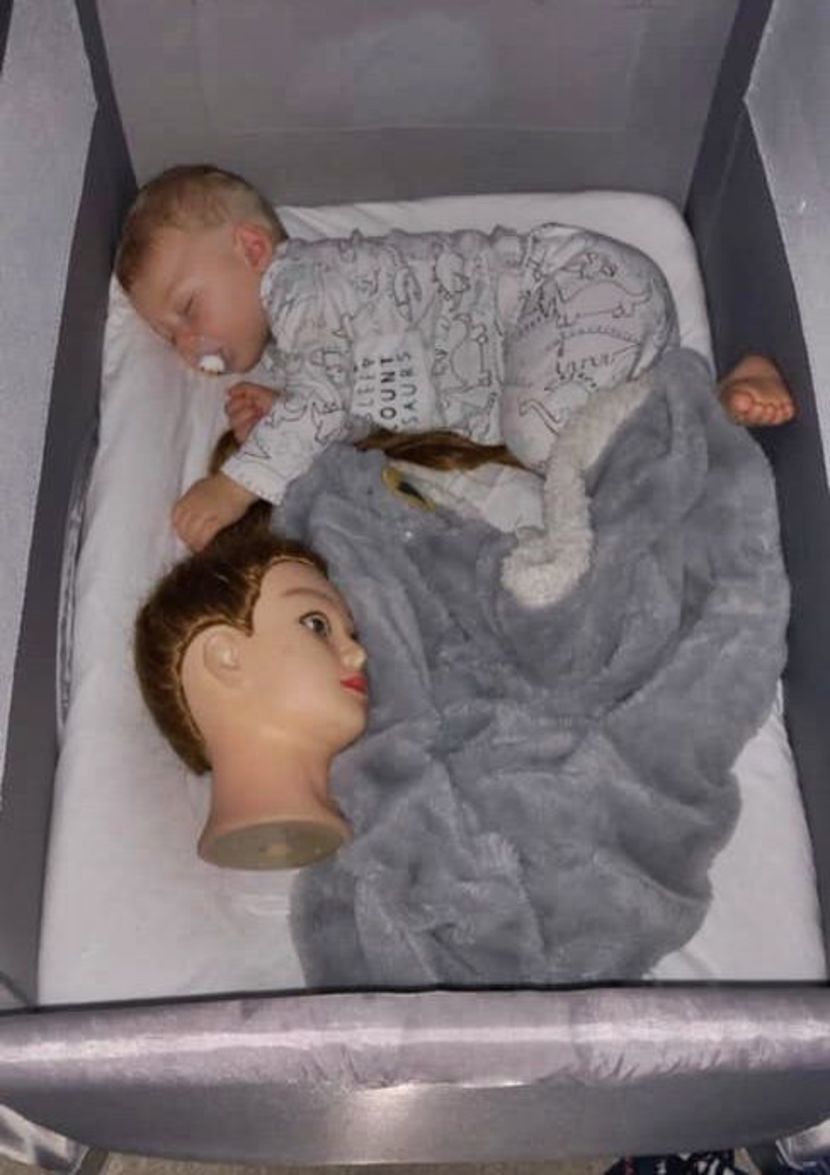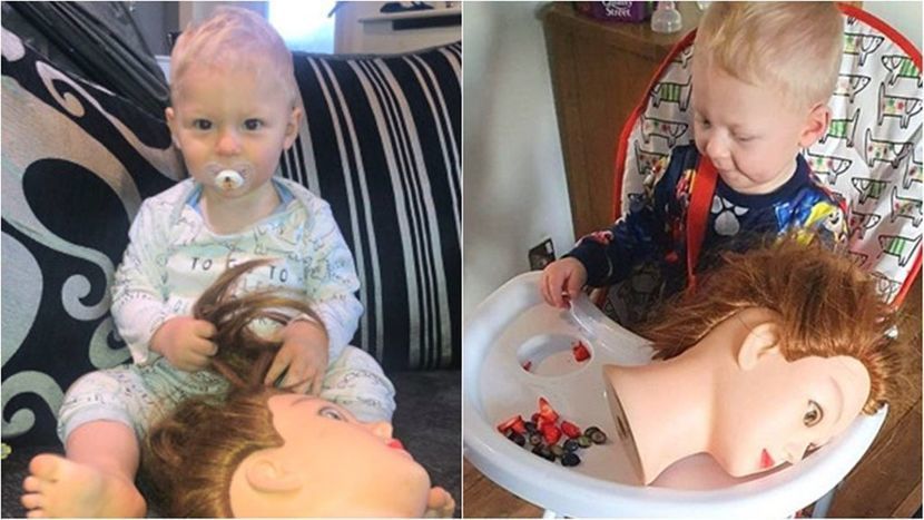 놀랍게도 해리는 마네킹을 보자마자 급속도로 정을 붙였습니다. 심지어 '바바'라는 이름을 붙여주고 어딜 가나 들고 다니더니, 바바가 옆에 없으면 밥 먹기를 거부하는 지경까지 이르렀습니다.