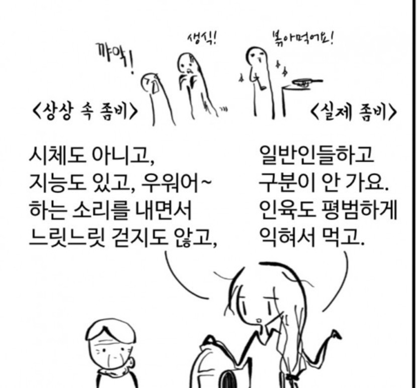 라는 프롤로그의 나레이션만 보면 도무지 짐작가지 않지만, 시원한 하늘색 썸네일에 쓰인 장르는 <드라마, 판타지, 좀비>인 매력적인 작품이다. 전작처럼 여전한 수묵화 특유의 느낌에 단순하고 시원한 그림체와 좀비물은 쉽게 연상되지 않지만, 좀비물의 잔혹함이 반드시 디테일한 그림체에서 오지 않는다는 사실을 우리는 이미 <좀비를 위한 나라는 없다>를 통해 이미 잘 알고 있다.